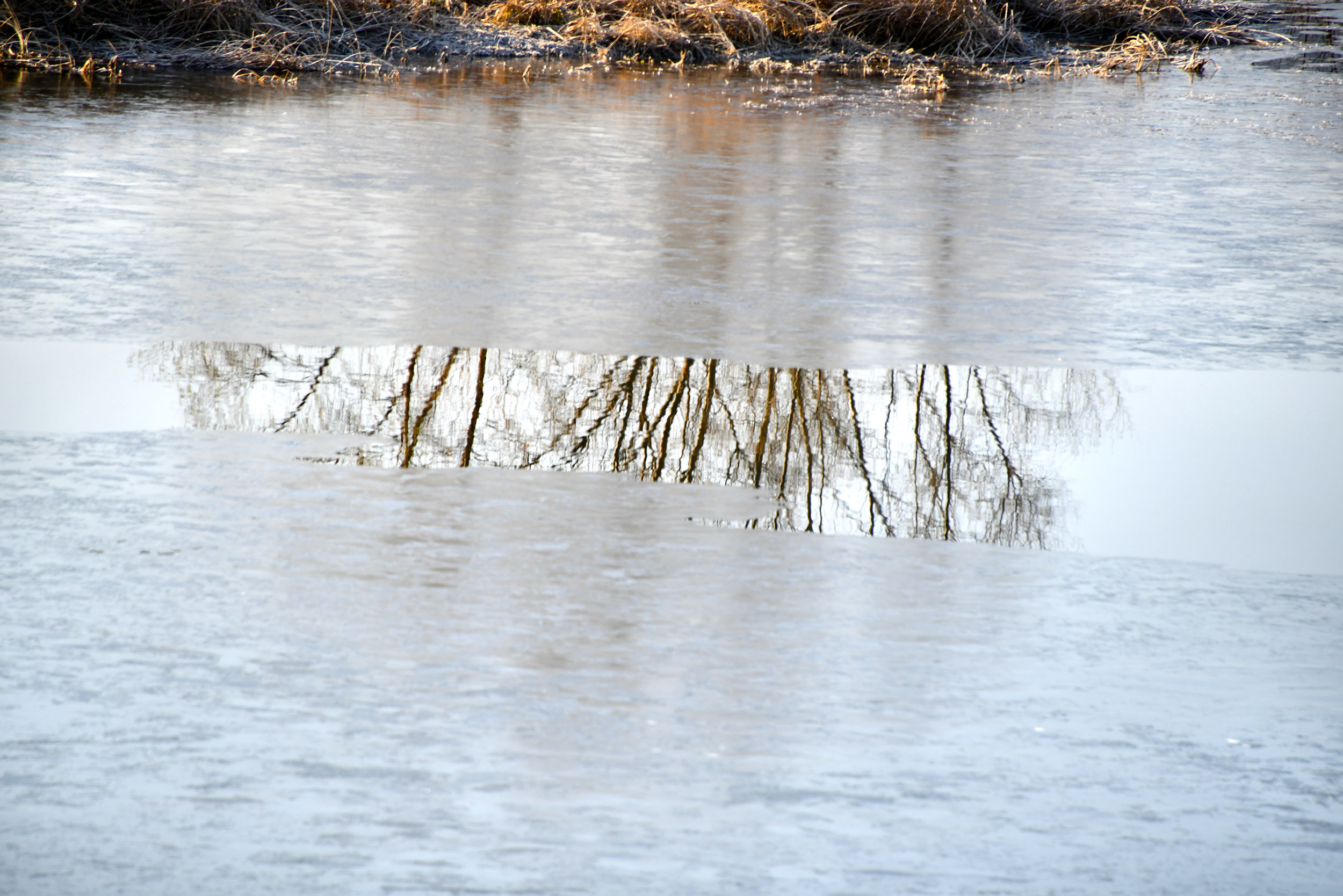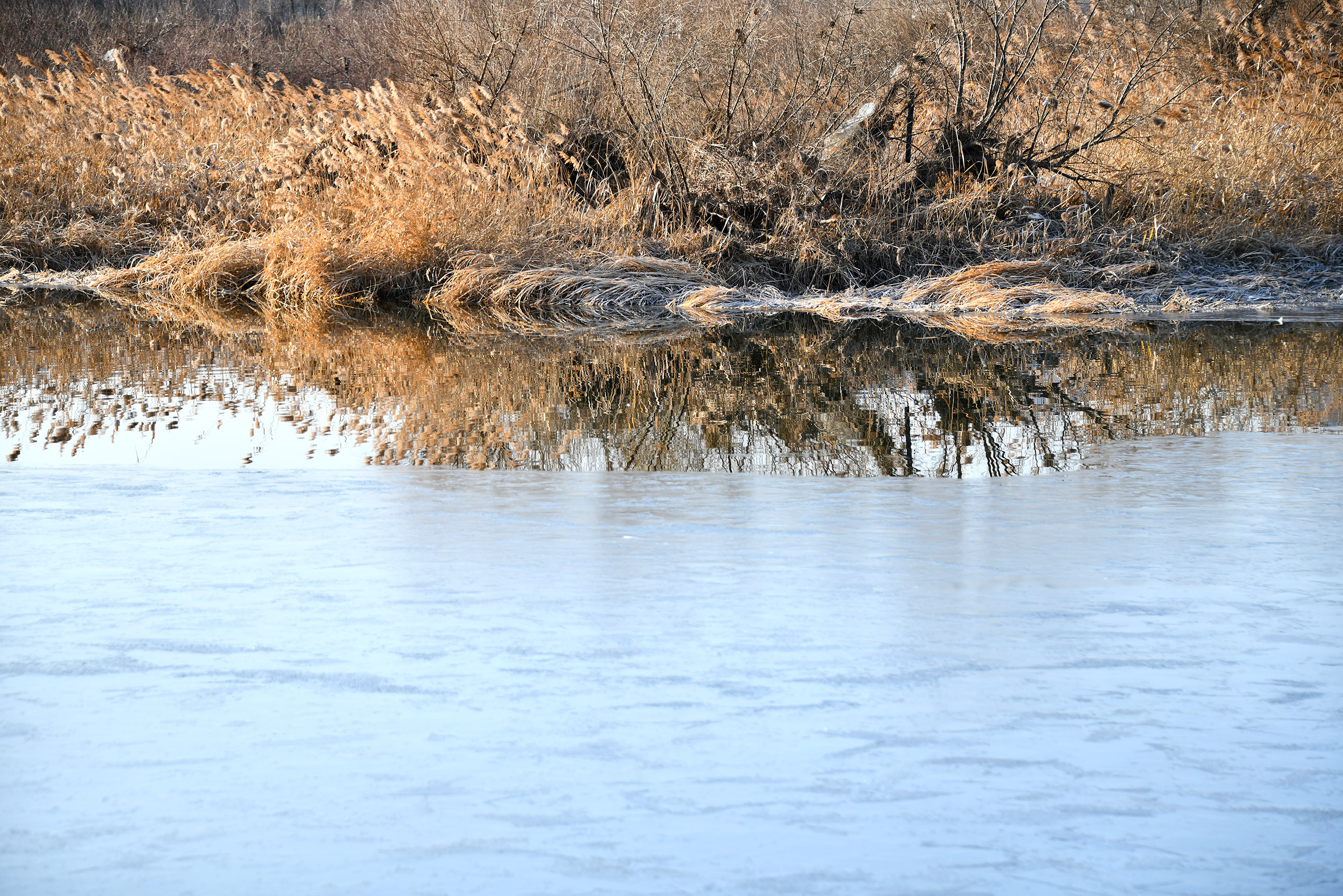 쓰러지지 않은 갈대의 모습 반영과 함께 담아보다