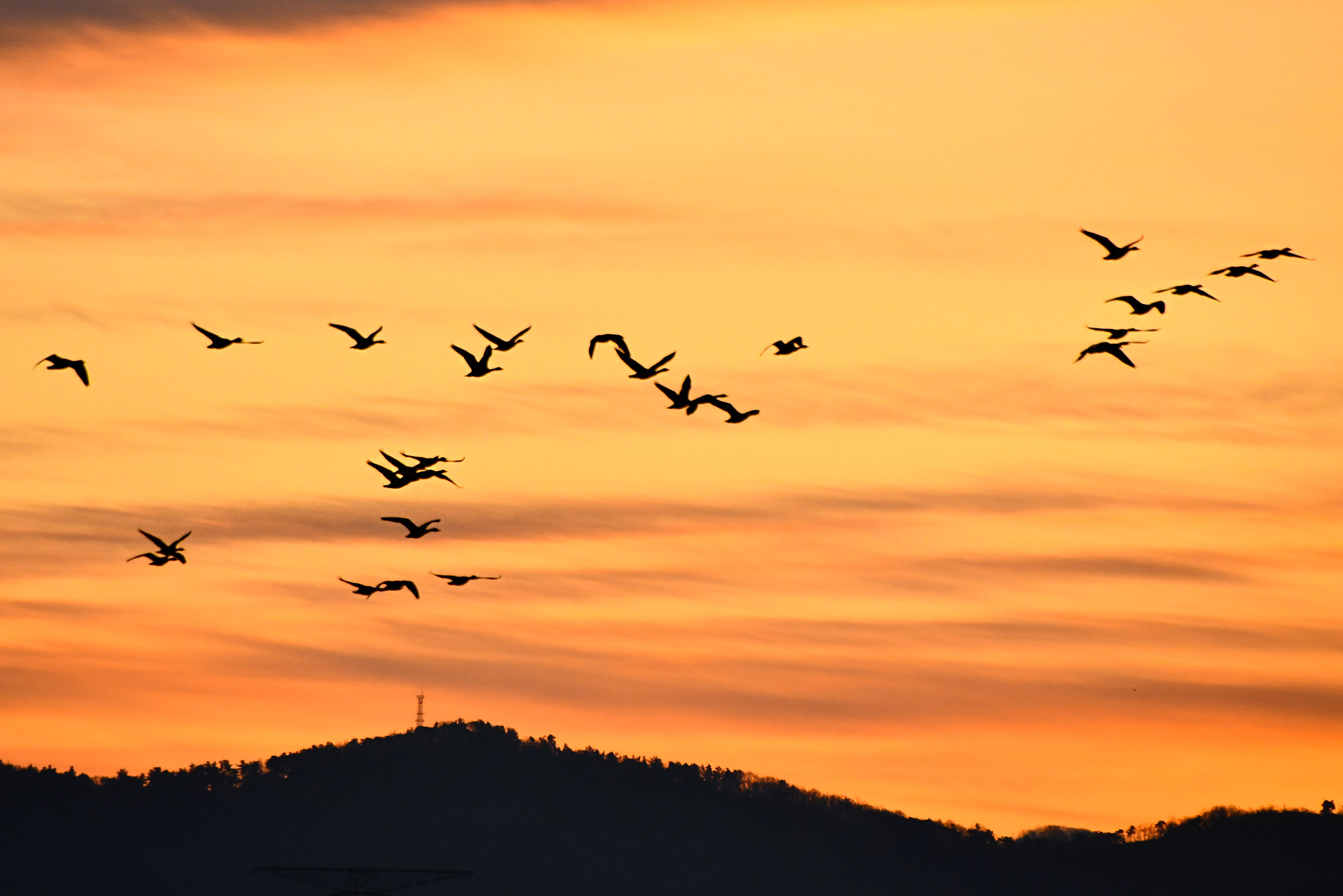 기러기들은 춤추고 노래하며 아침을 활기차게 연다.