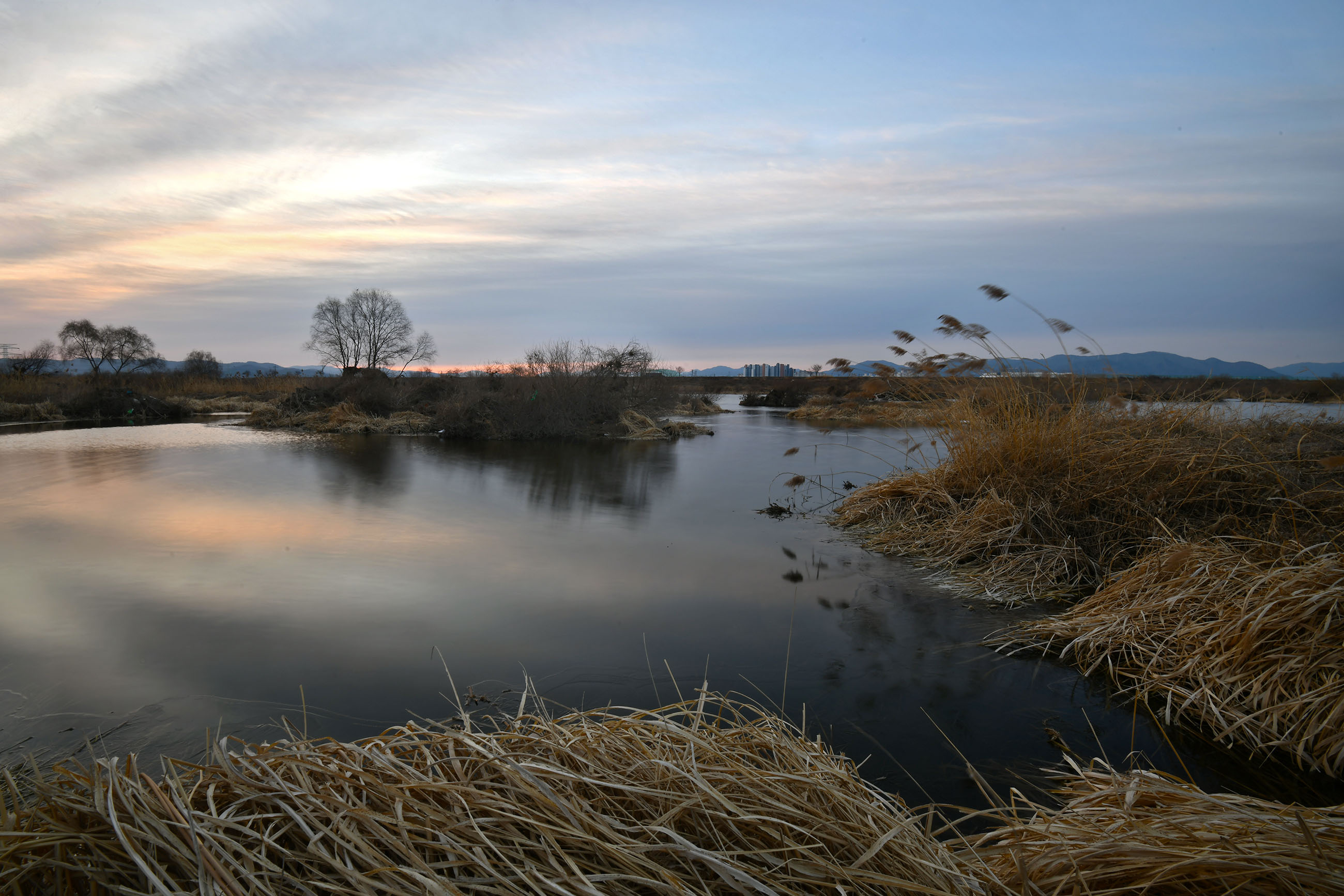 흐릿한 하늘은 물위에 자신의 그림자를 띄우고