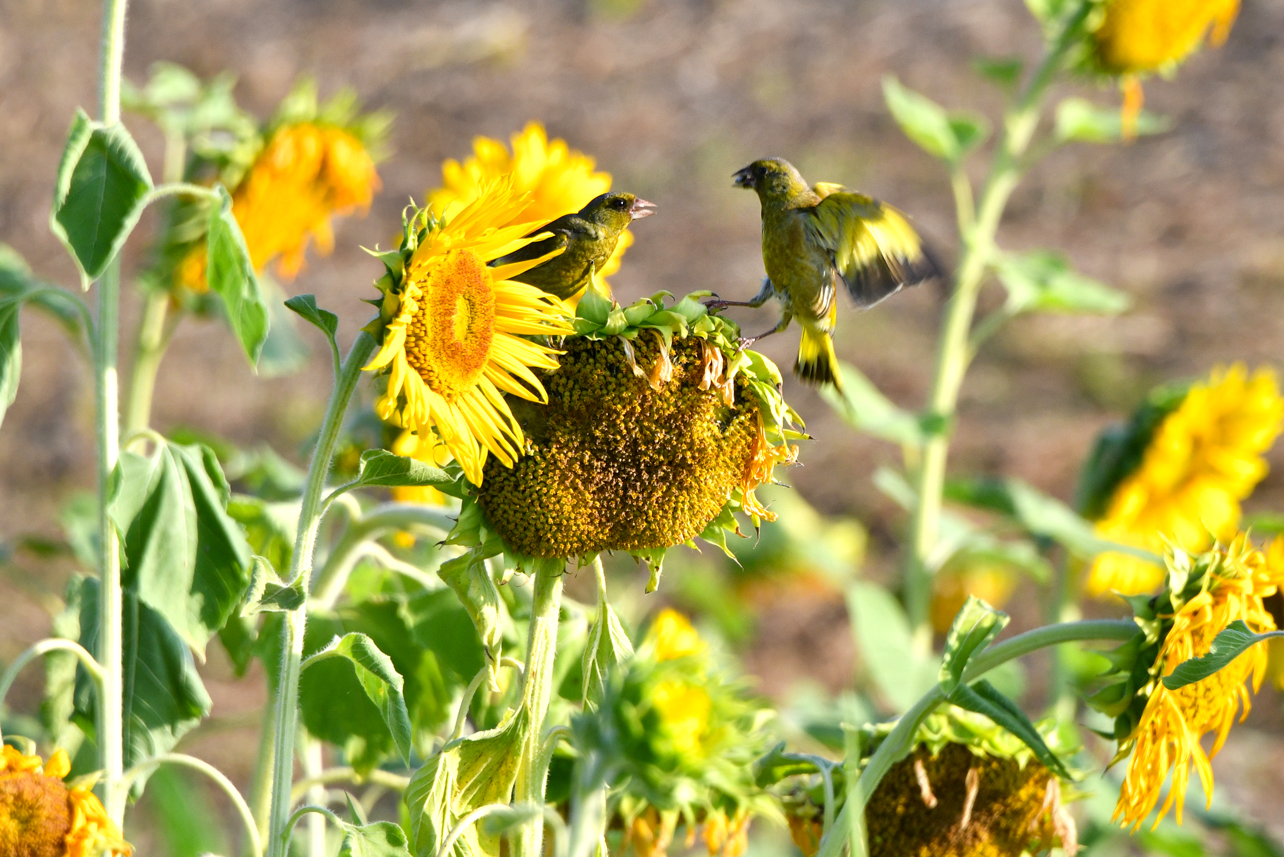 참새와 비슷한 방울새도 해바라기씨를 좋아해 무리지어 이곳에서 많이 만나다.