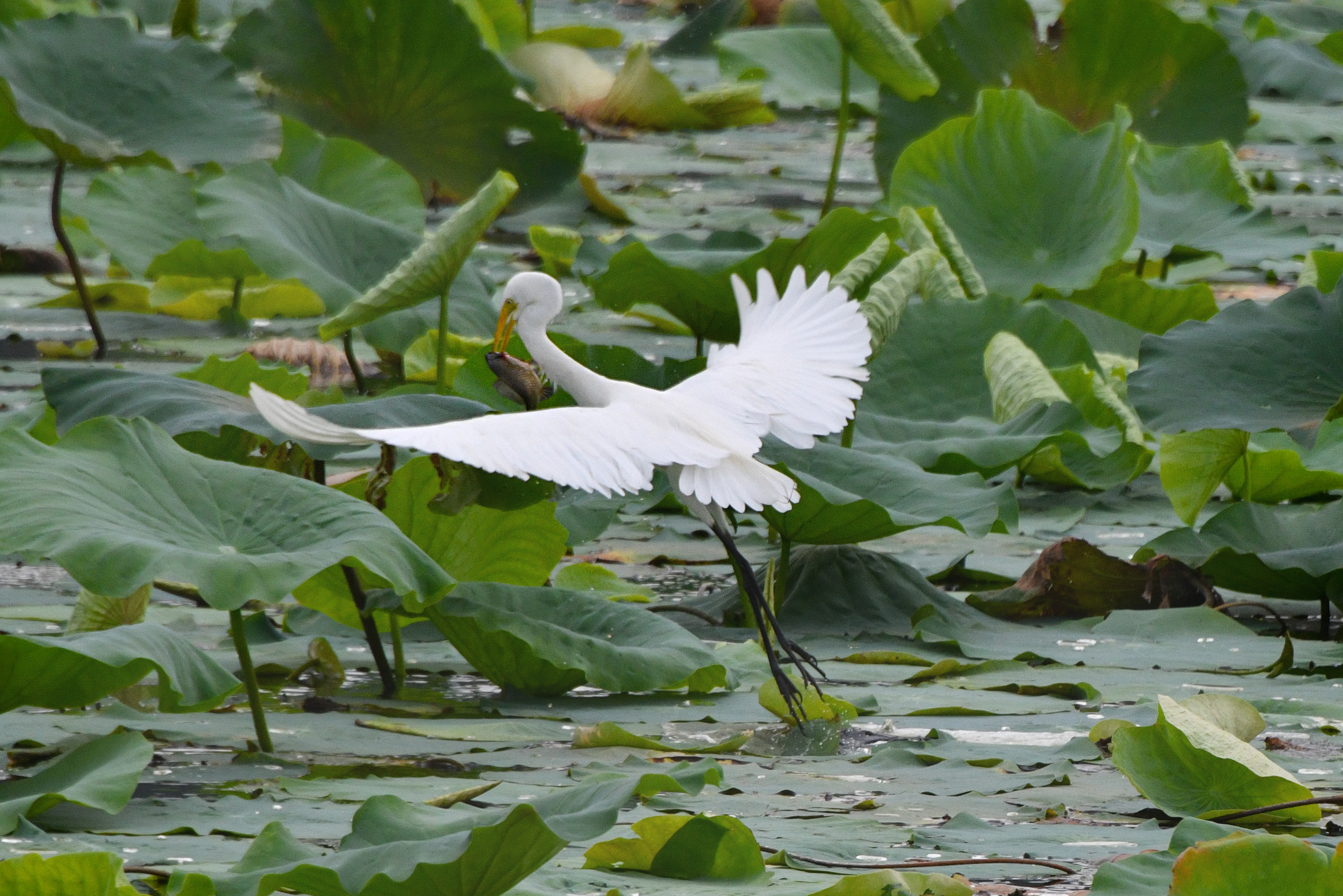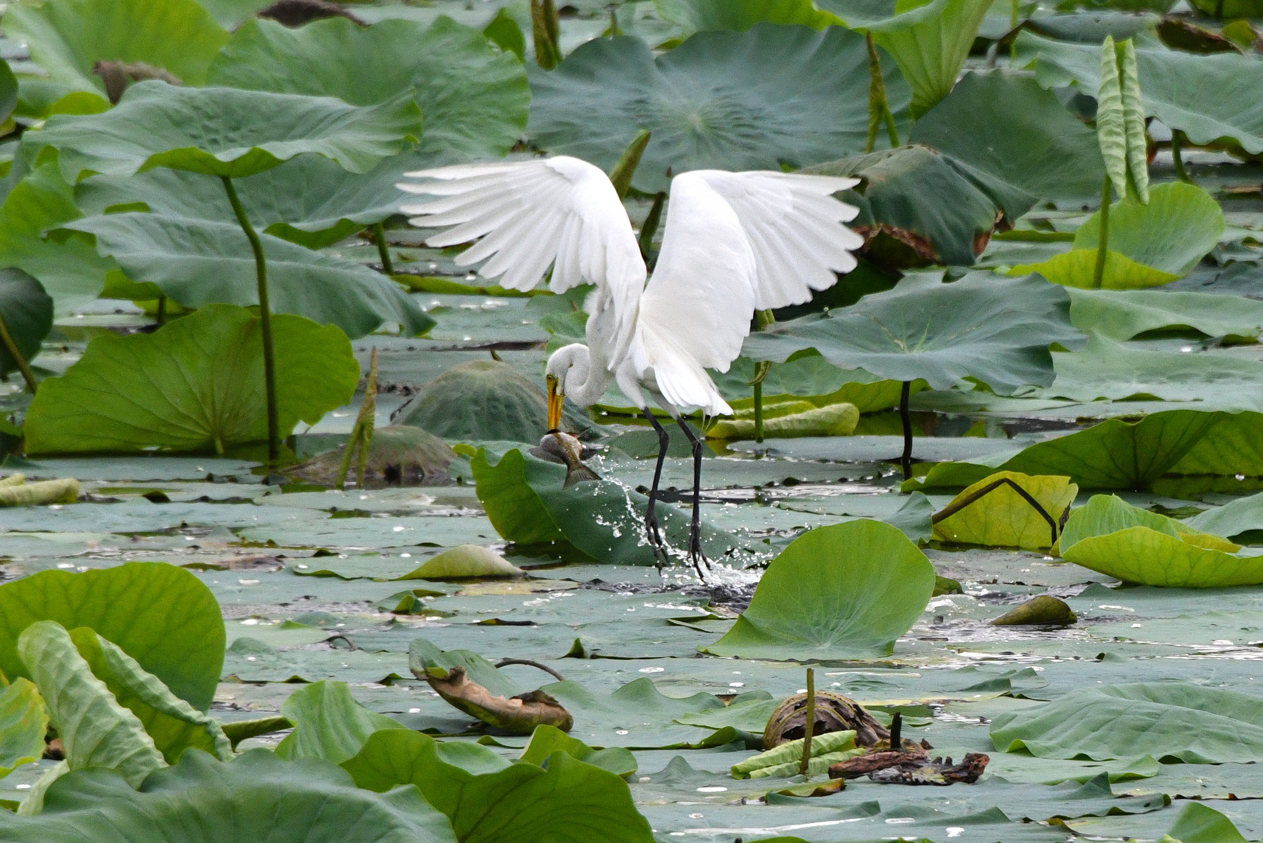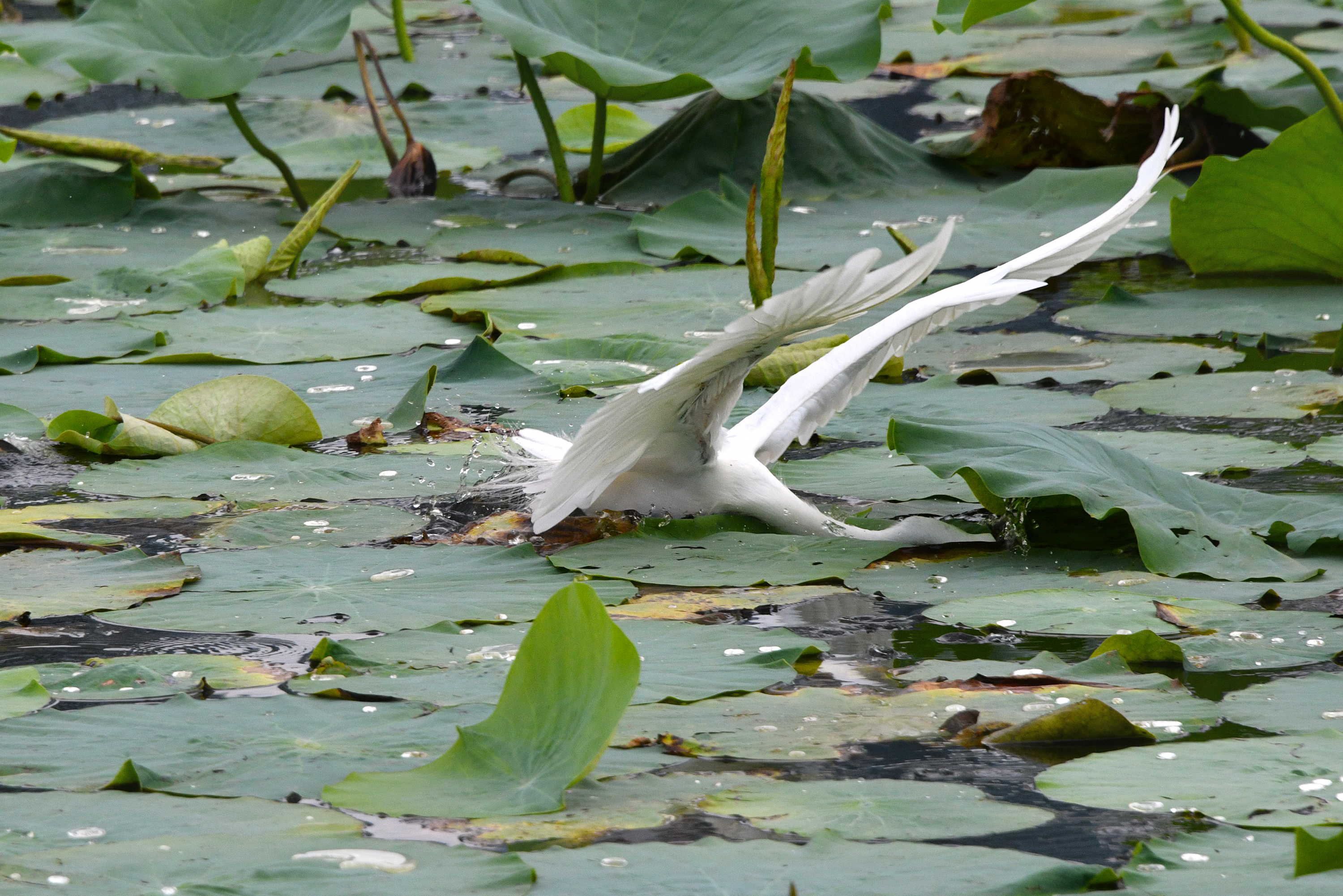 연잎위로 사뿐, 백로 사냥의 날렵함에 나도 숨죽여 따라 긴장 하며 바라본다.