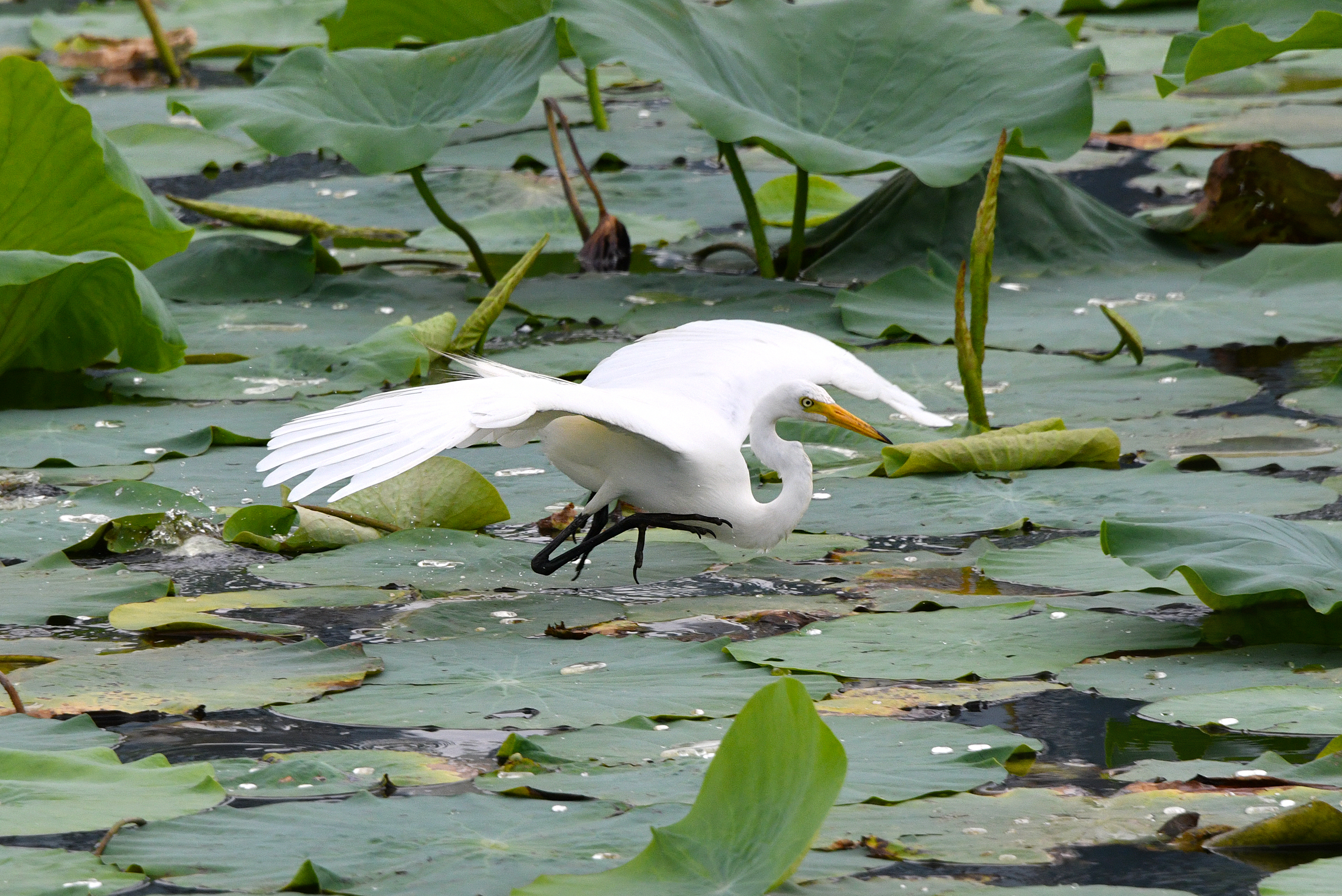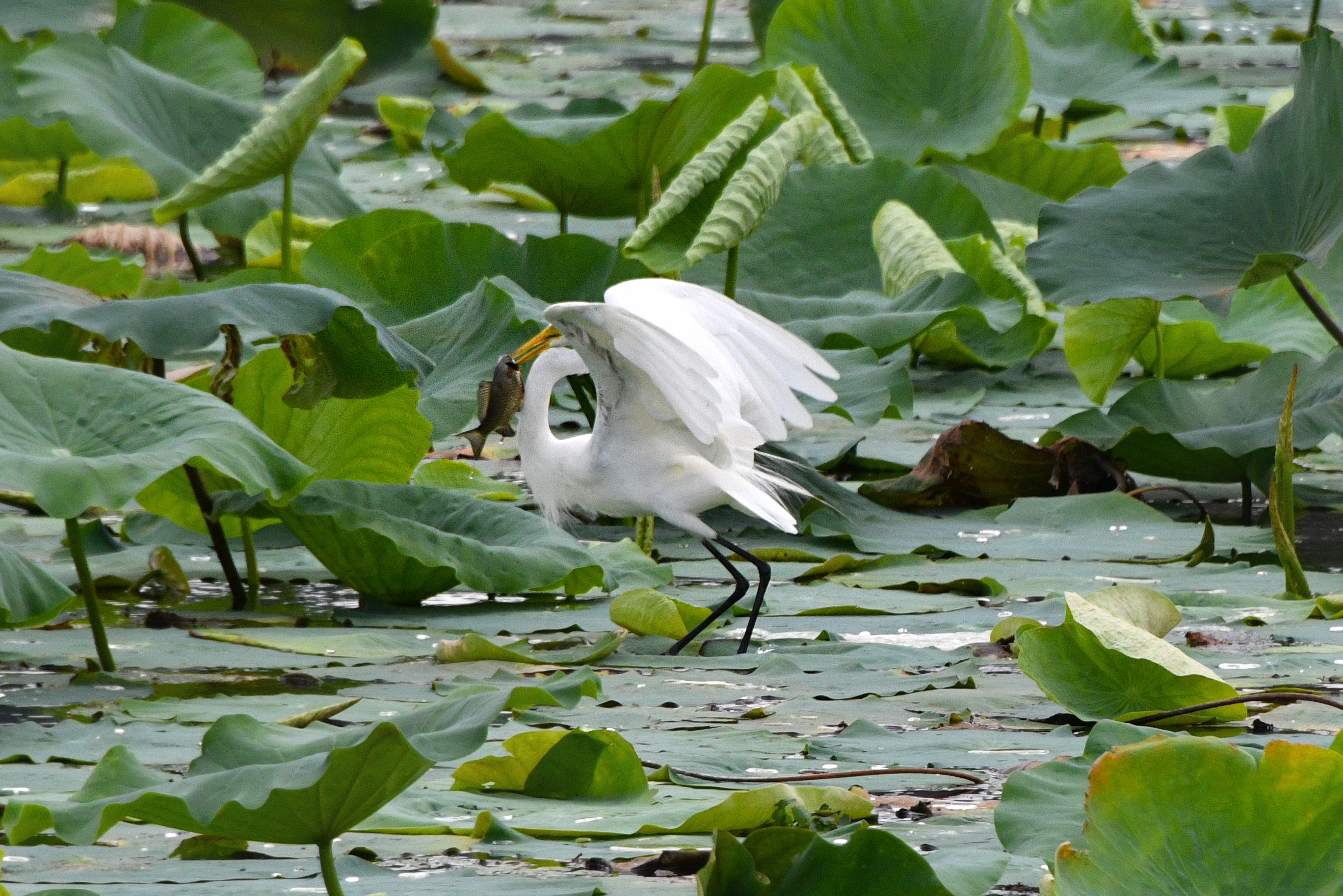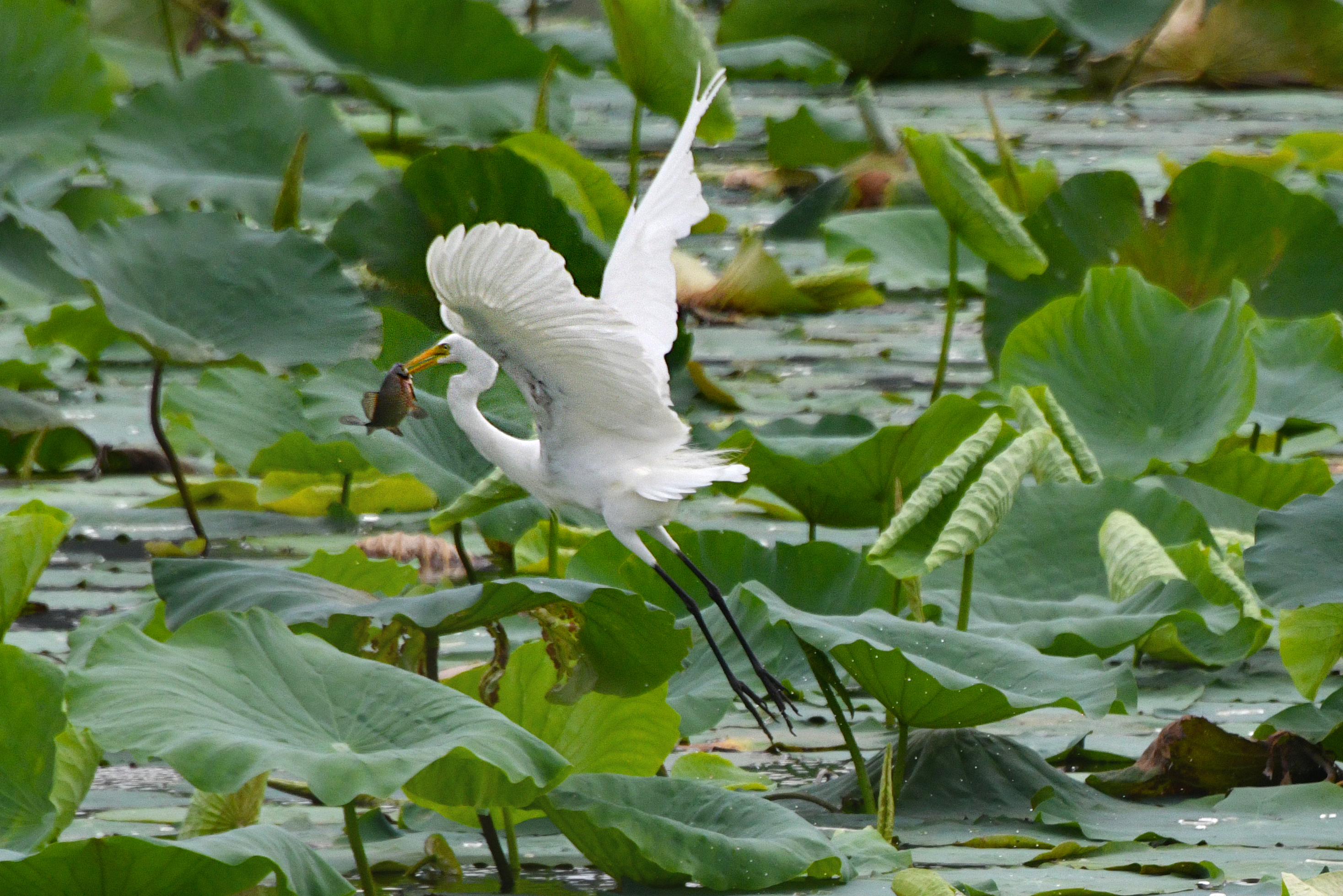 연잎위로 사뿐, 백로 사냥의 날렵함에 나도 숨죽여 따라 긴장 하며 바라본다.