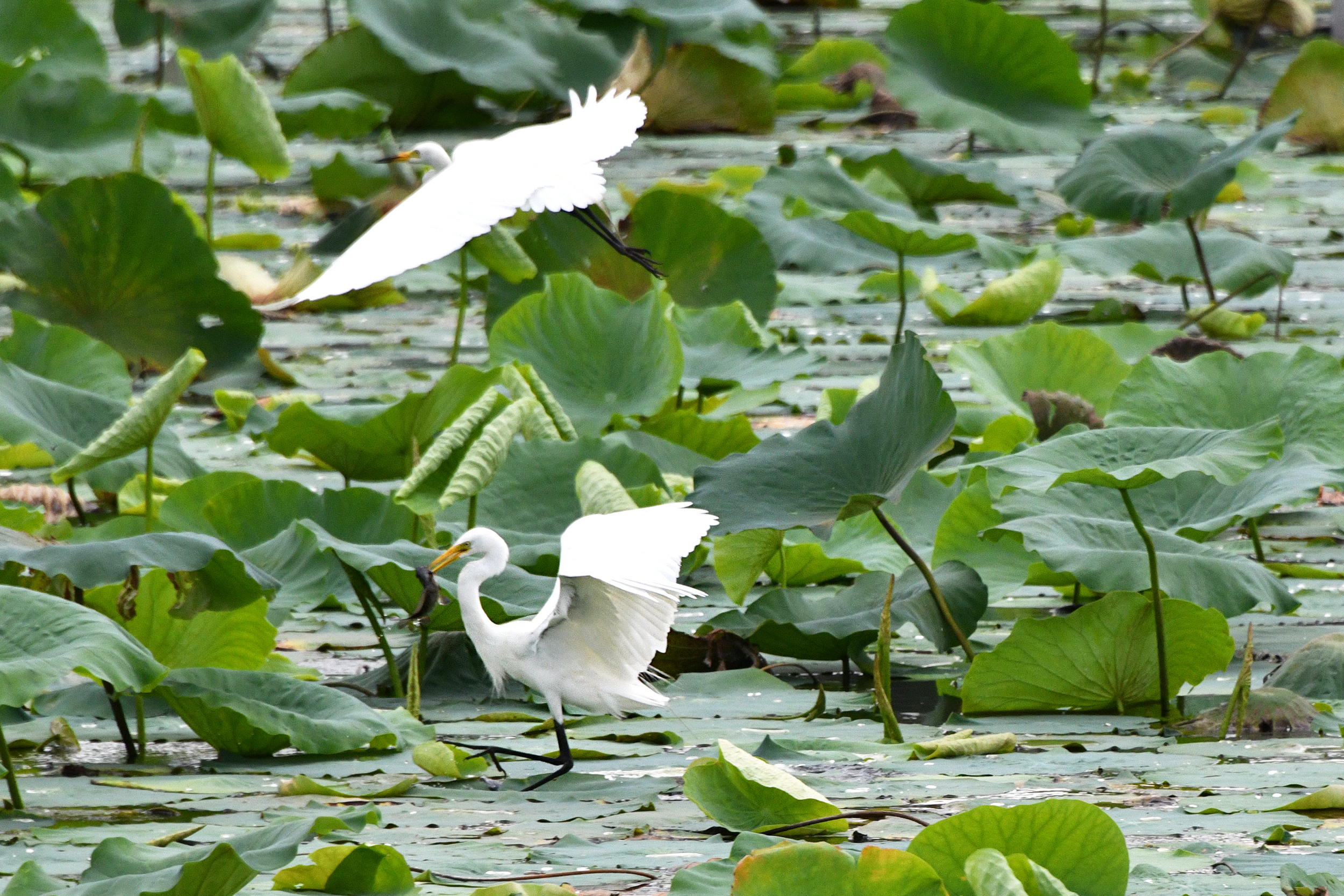 연꽃은 별로 없고 백로 두마리가 놀고 있다.