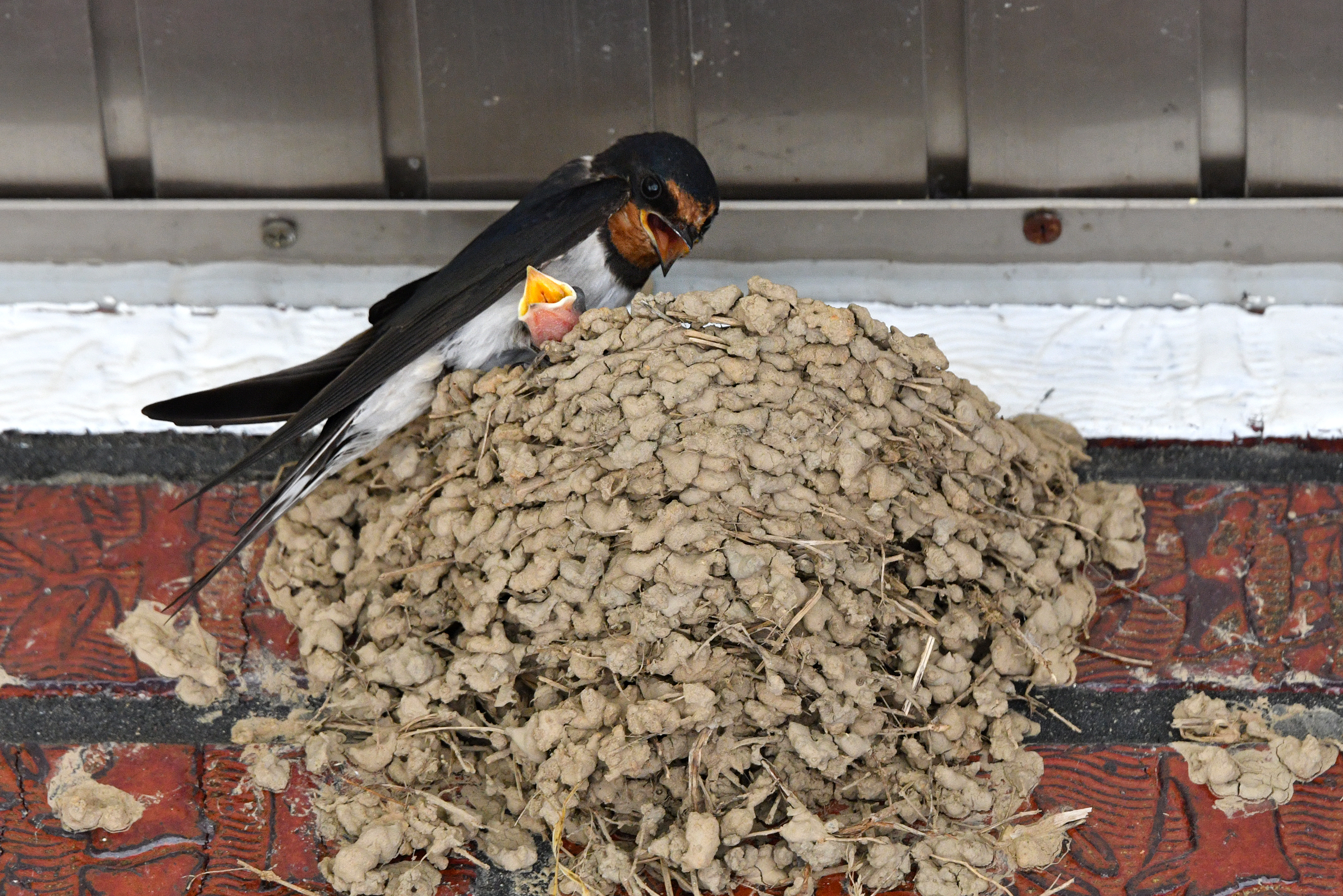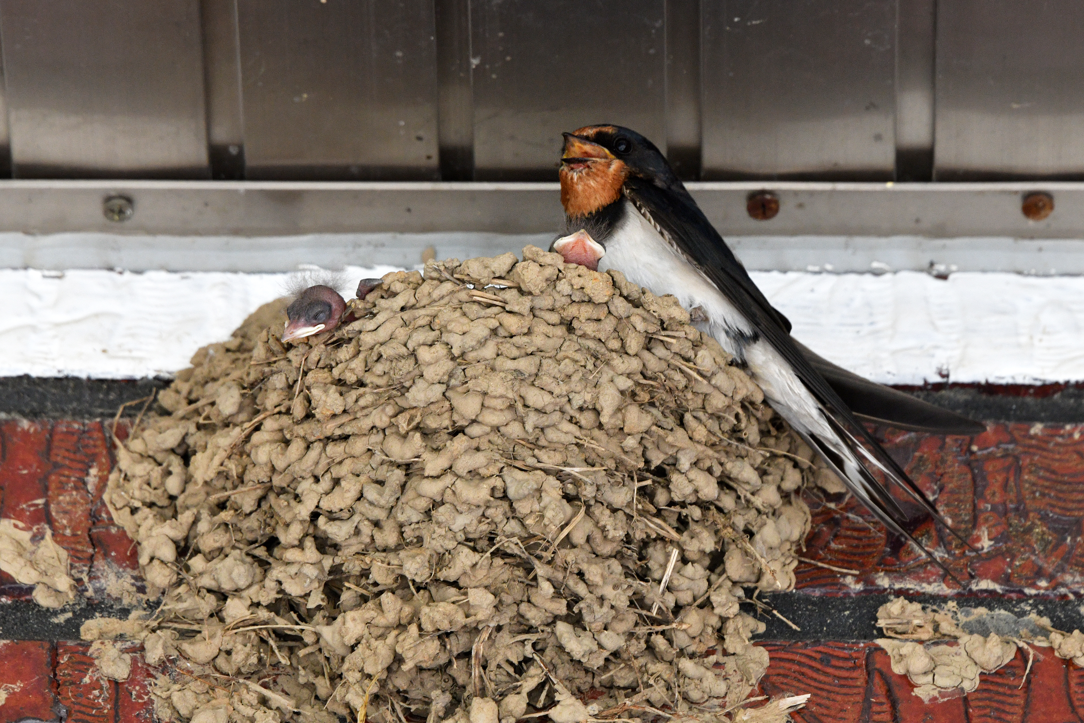 새끼들 먹이 나르느라 바쁜 제비 더위에 지쳤는지, 아빠 제비 빨리 오라고 소리지른다.ㅋ