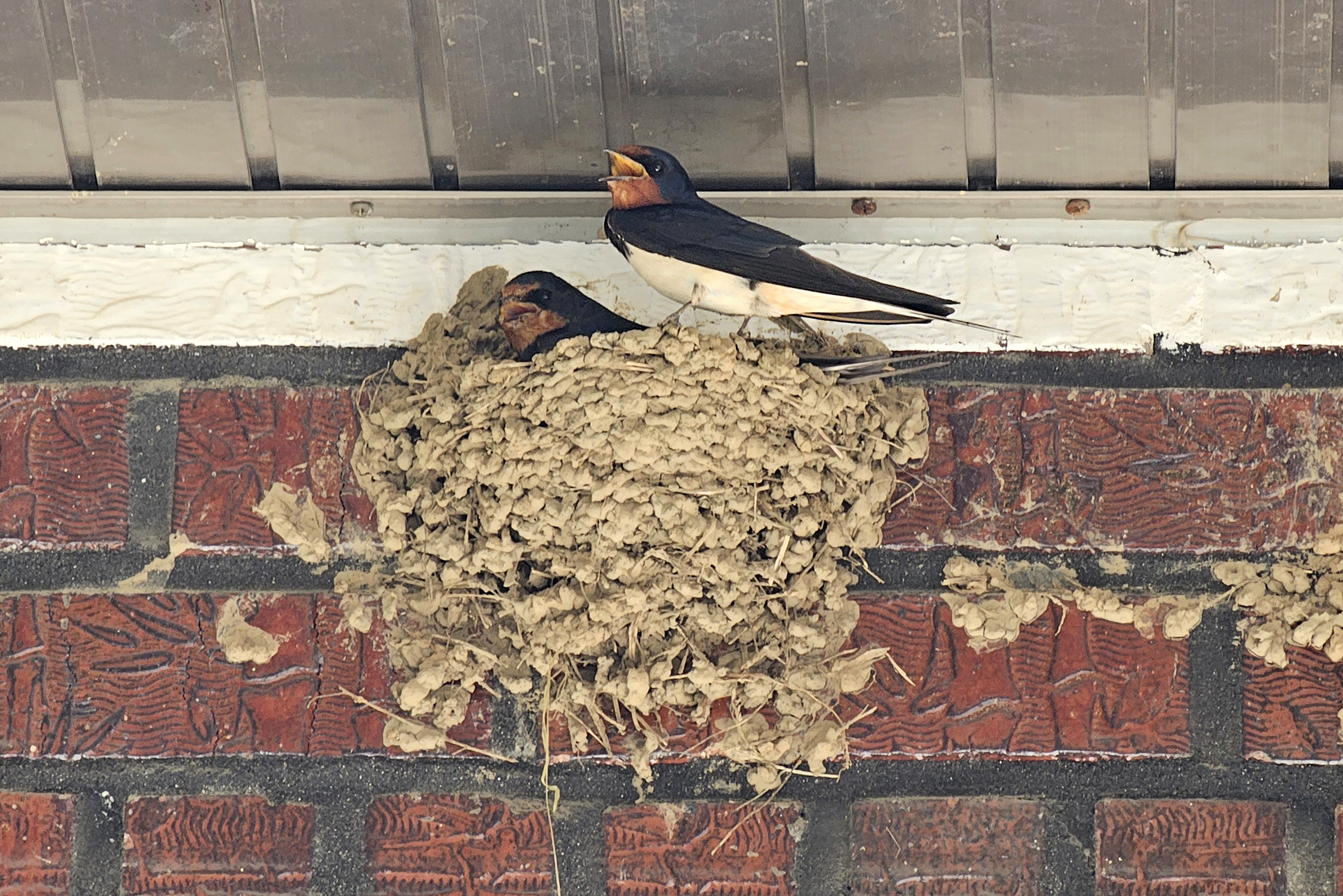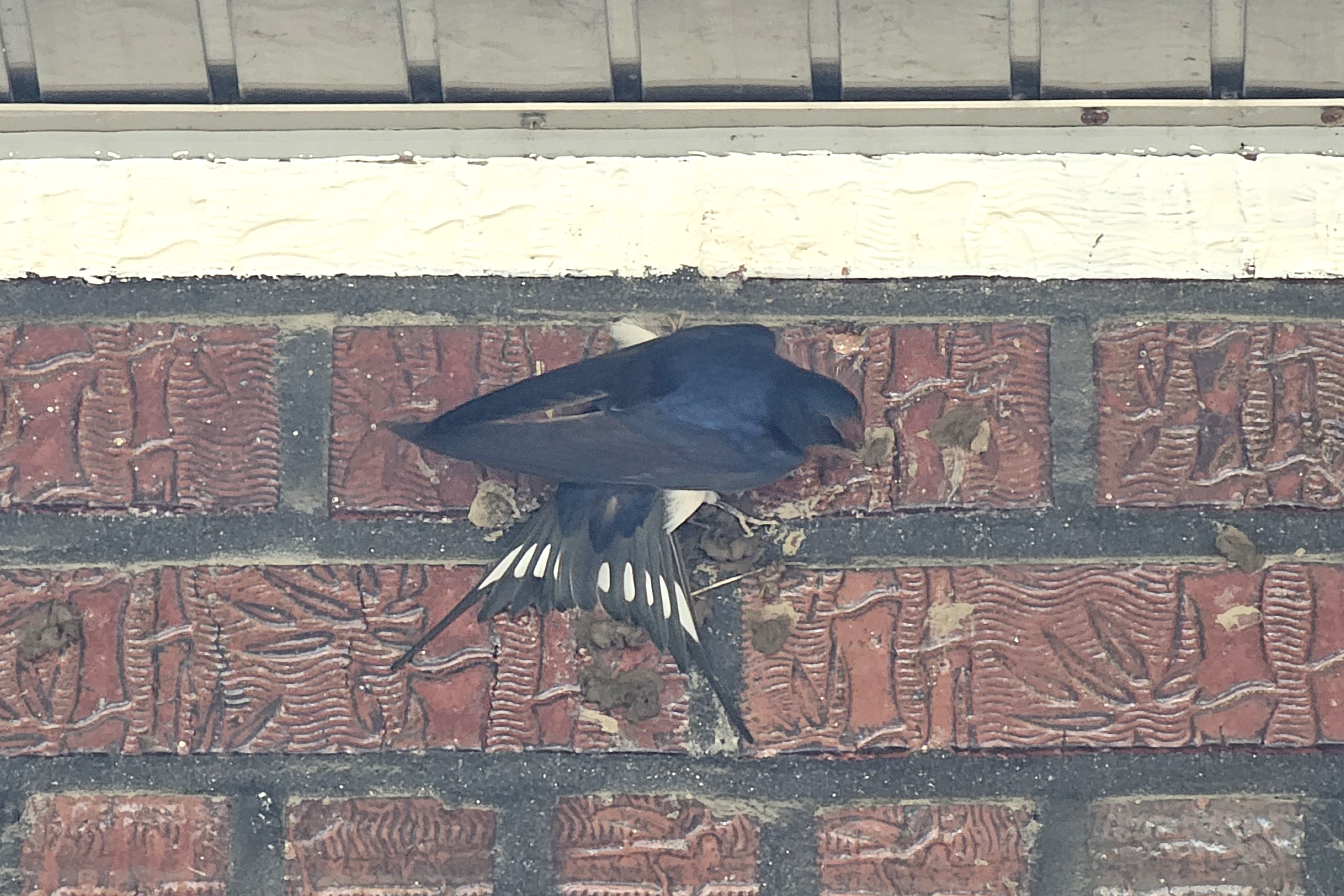6월 28일 흙을 물어 새 둥지를 급하게 짓고 있는 모습을 보다. (핸폰)
