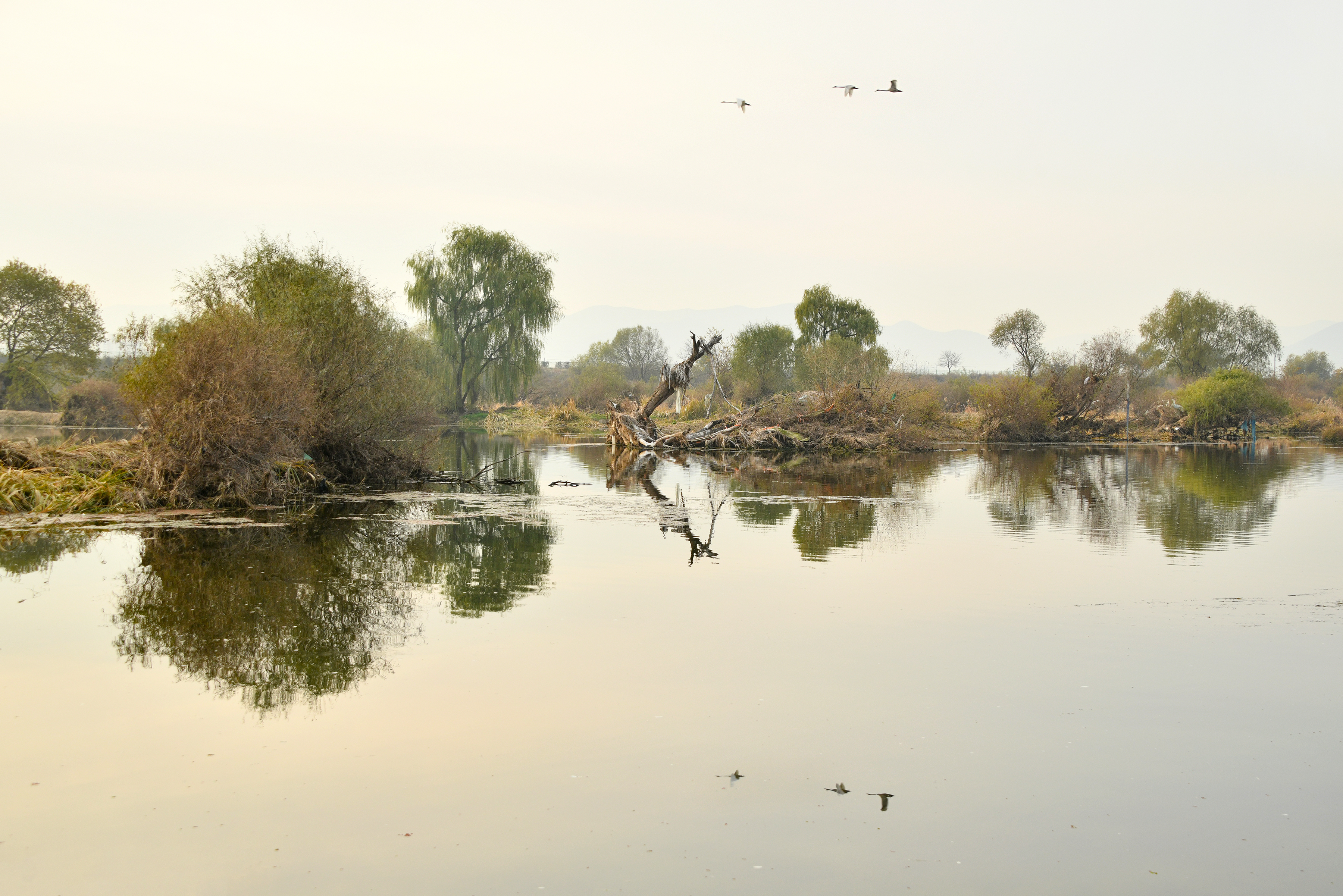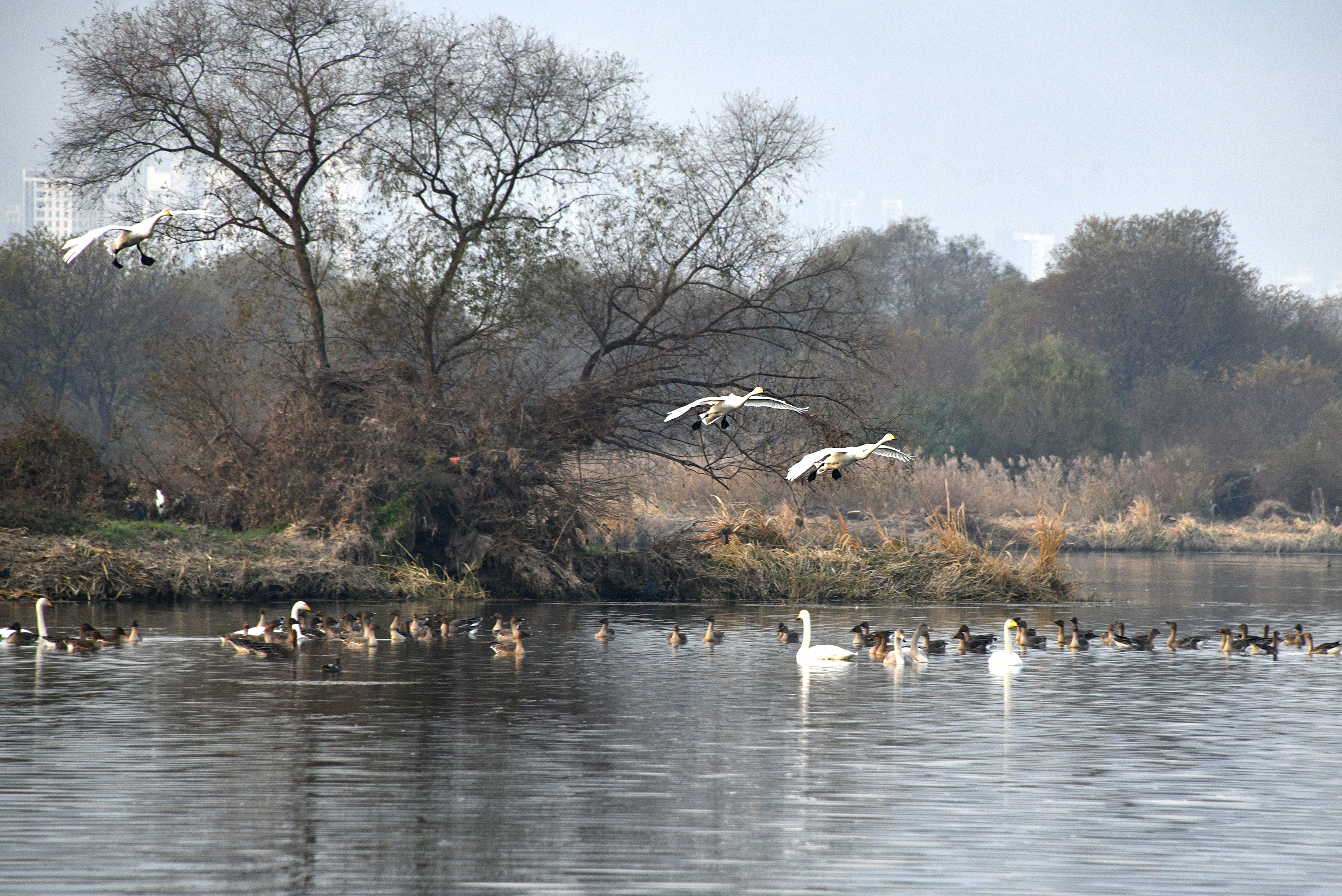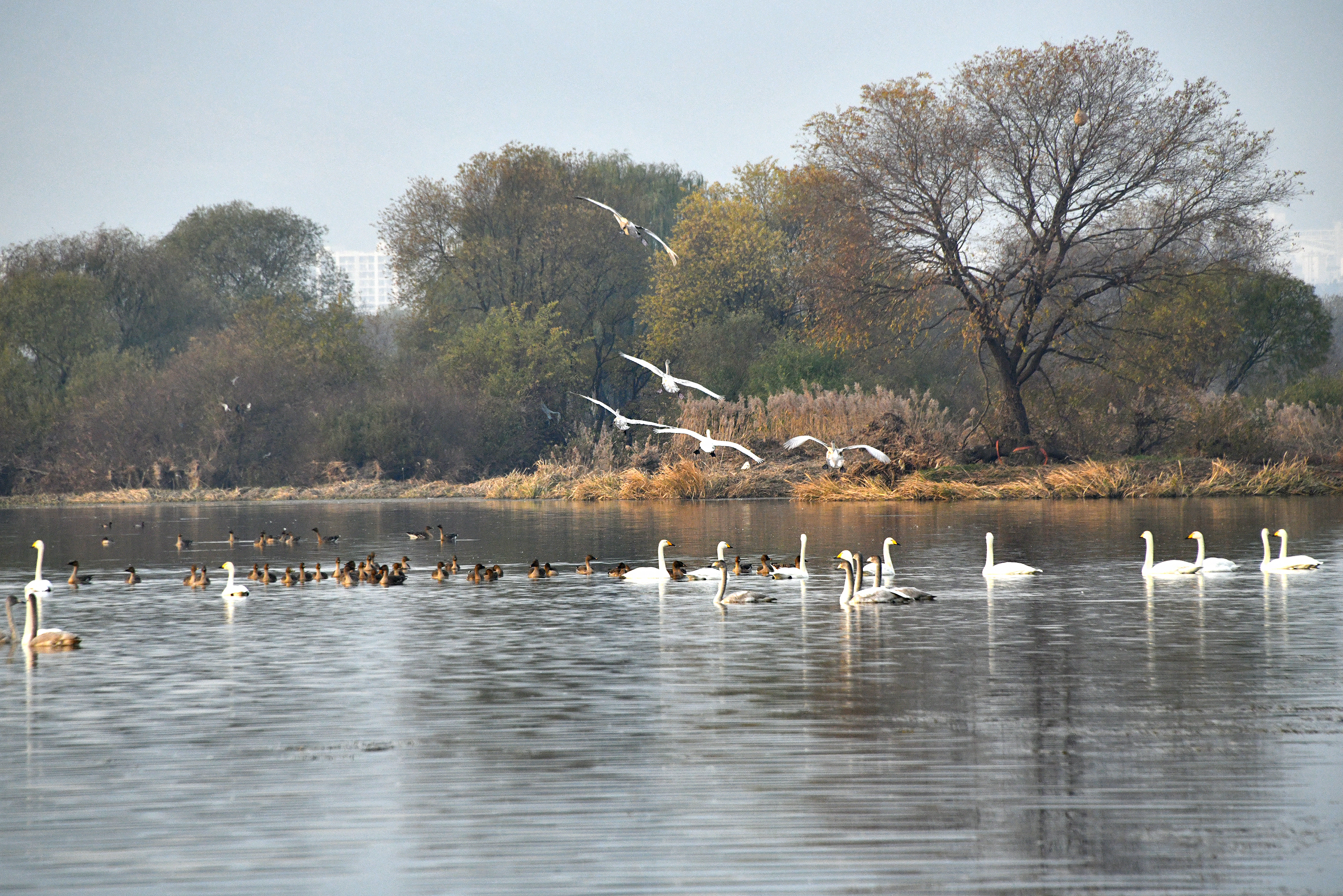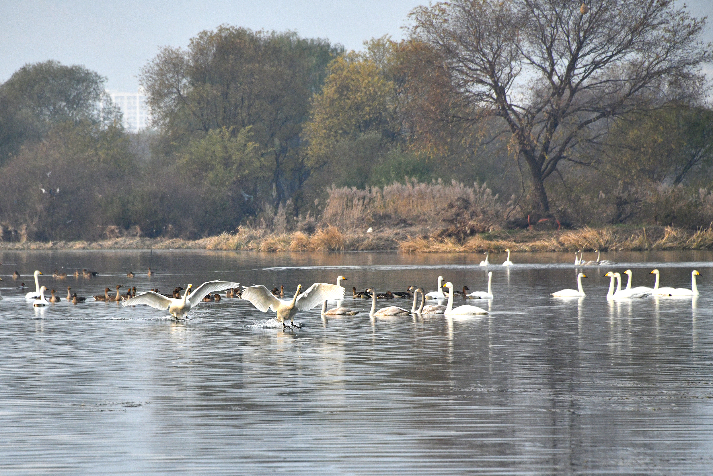 고니와 기러기가 돌아와 한산하던 강이 다시 북적이며 생기가 넘쳐 보인다.