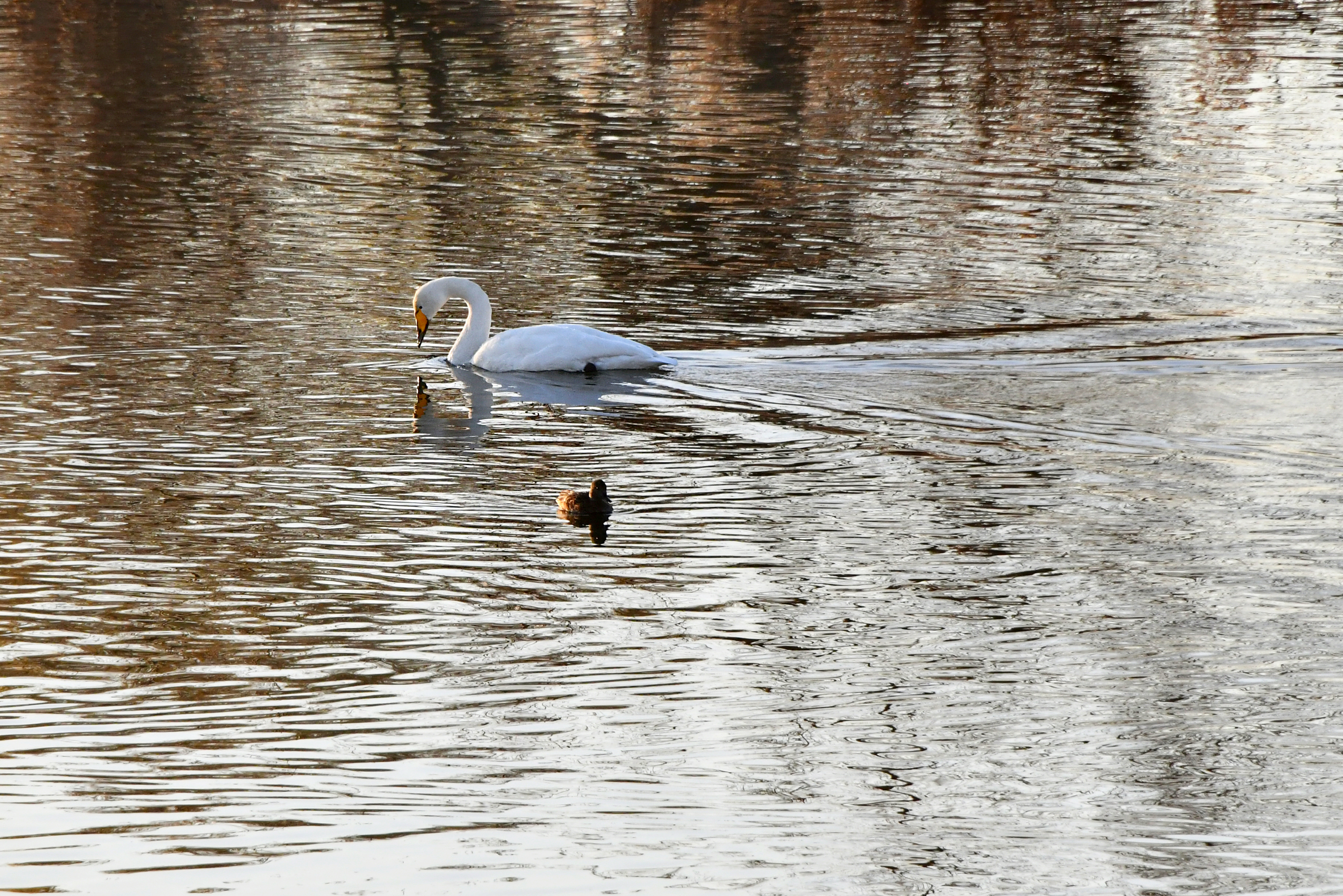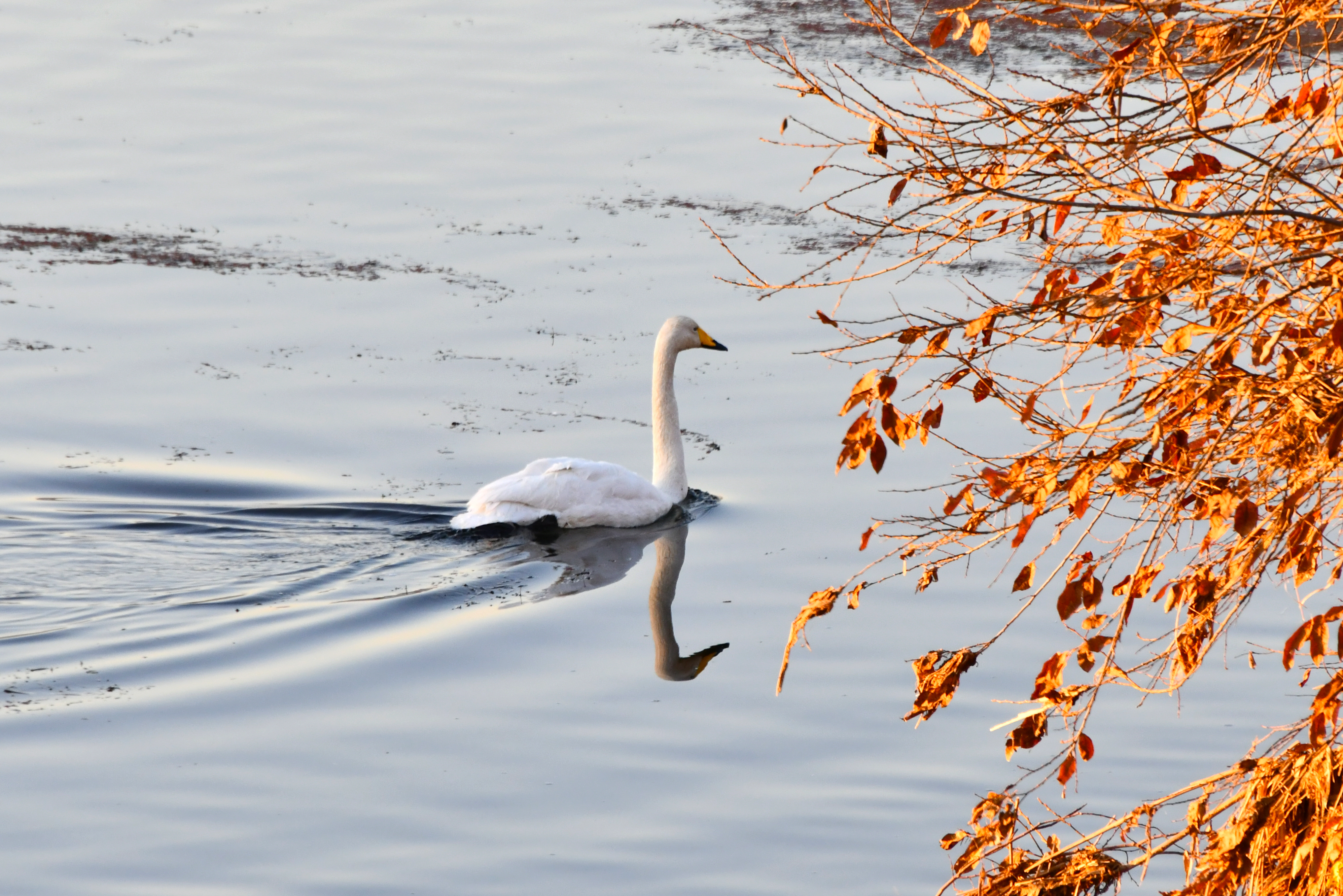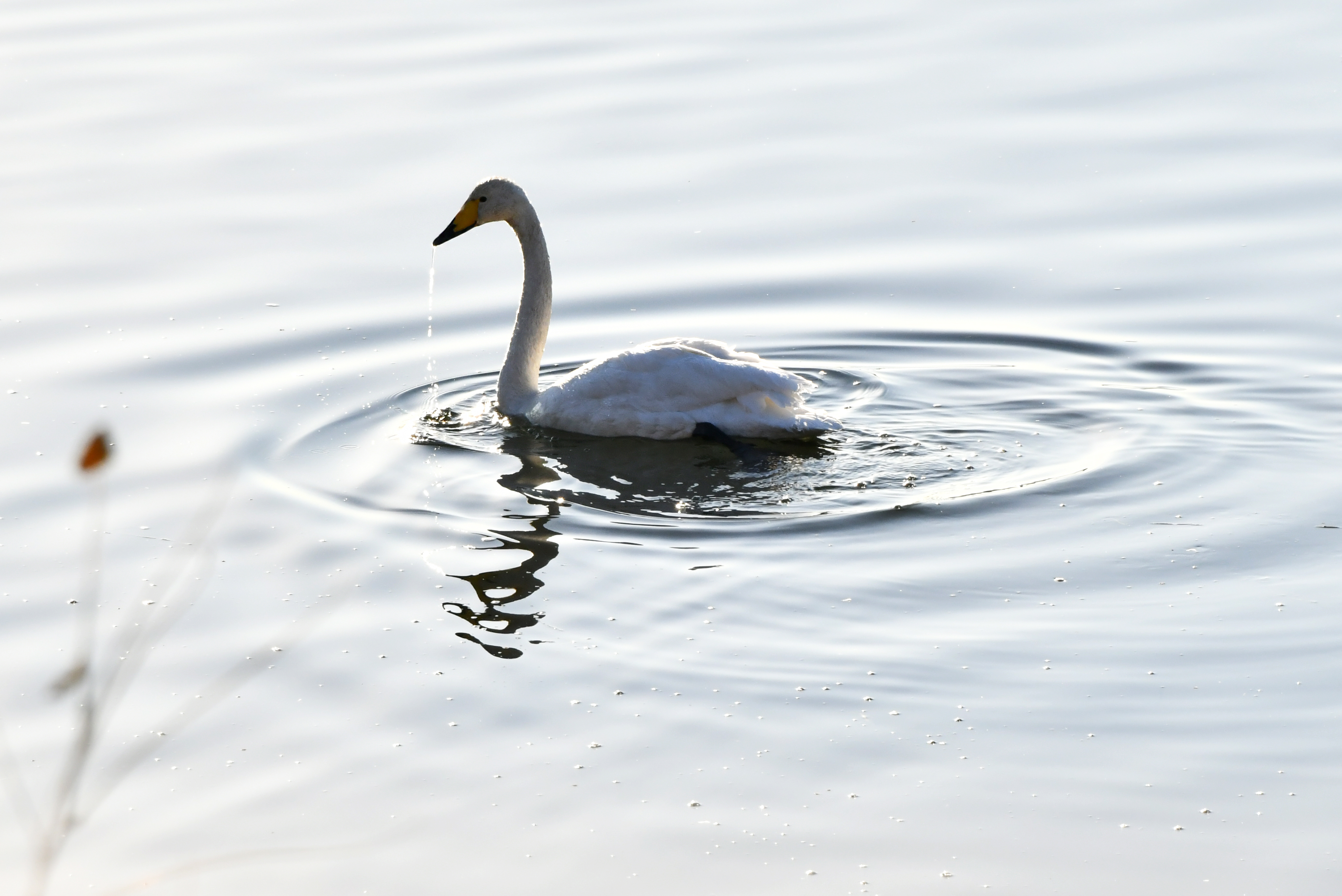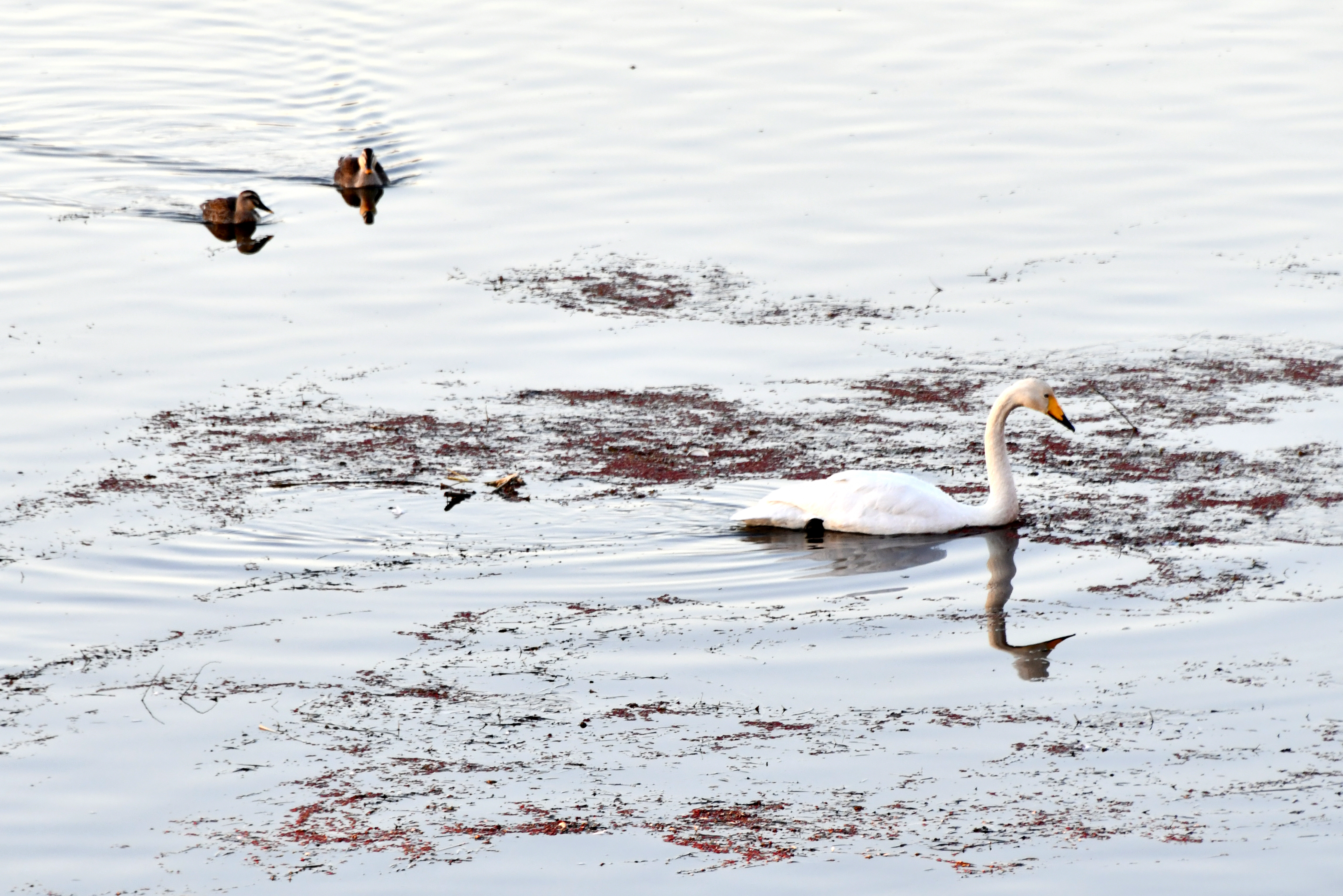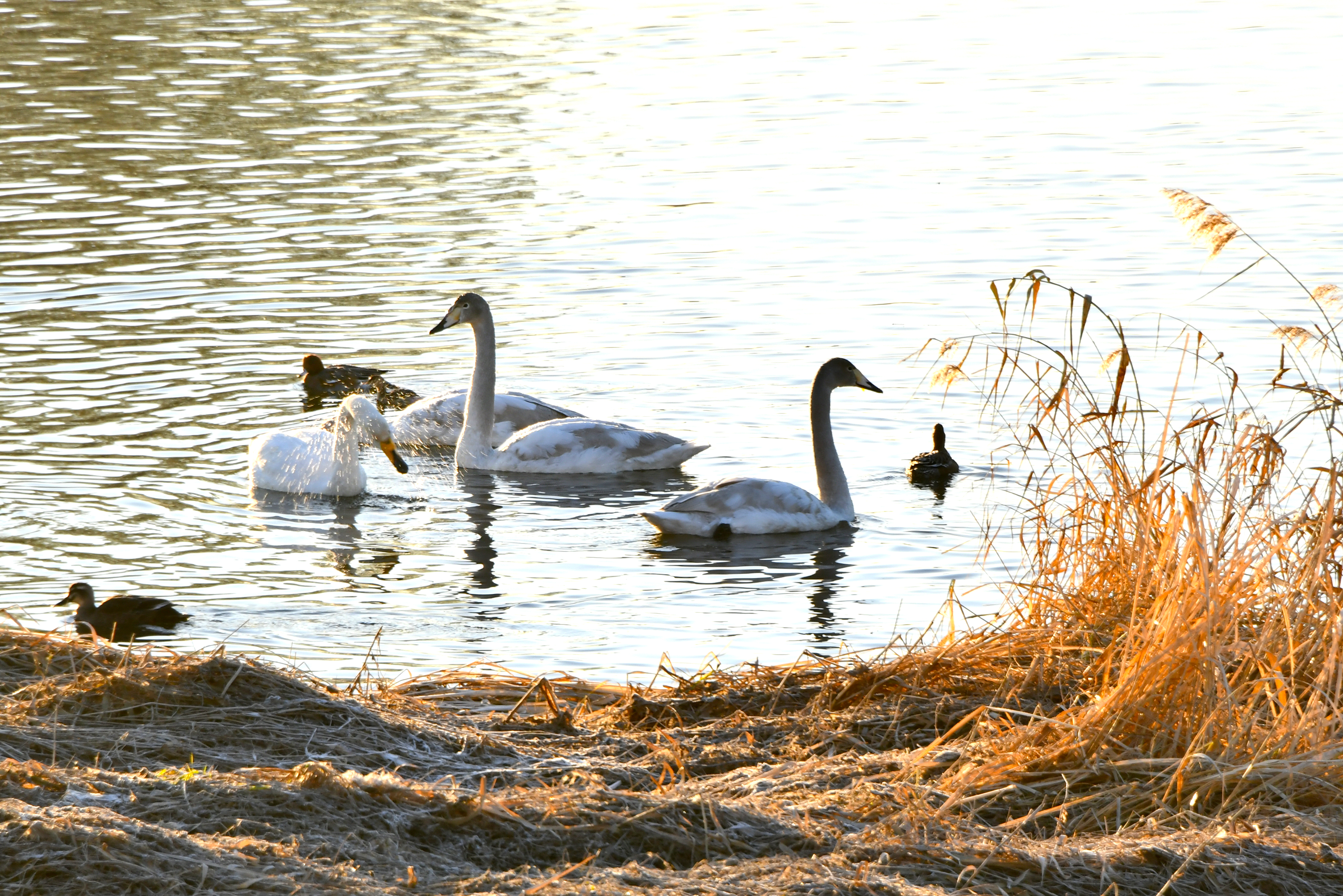 습지에는 얼음이 꽁꽁이라 가남지에서 자고 날아오는 고니