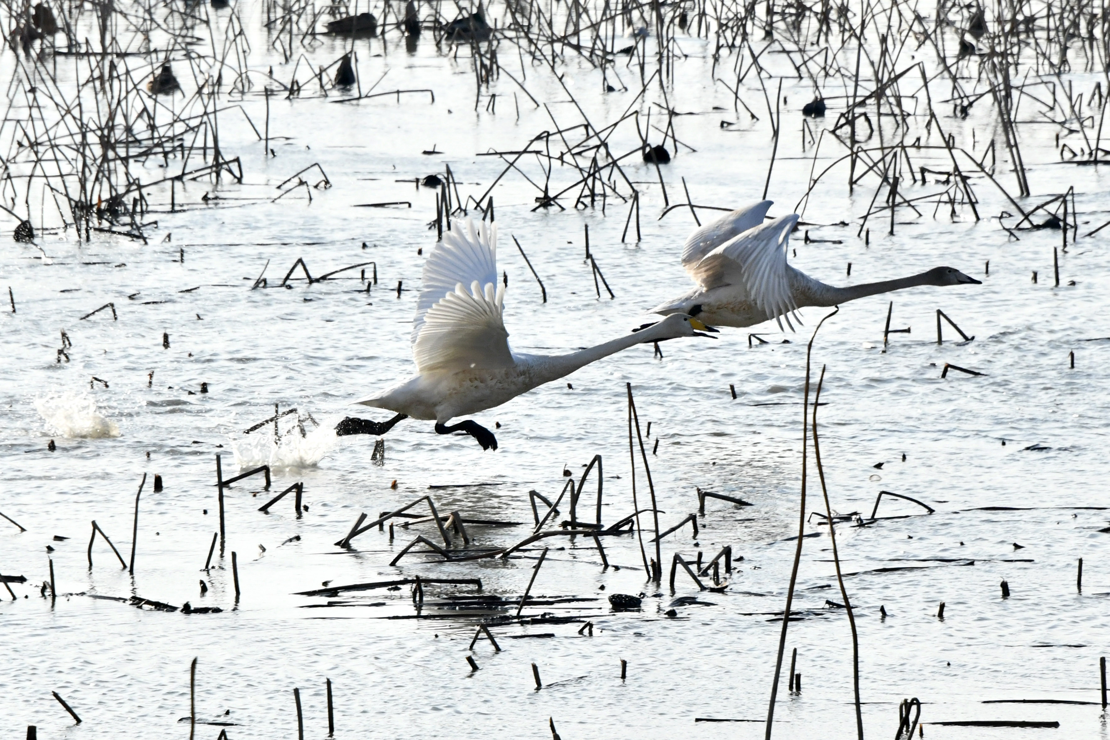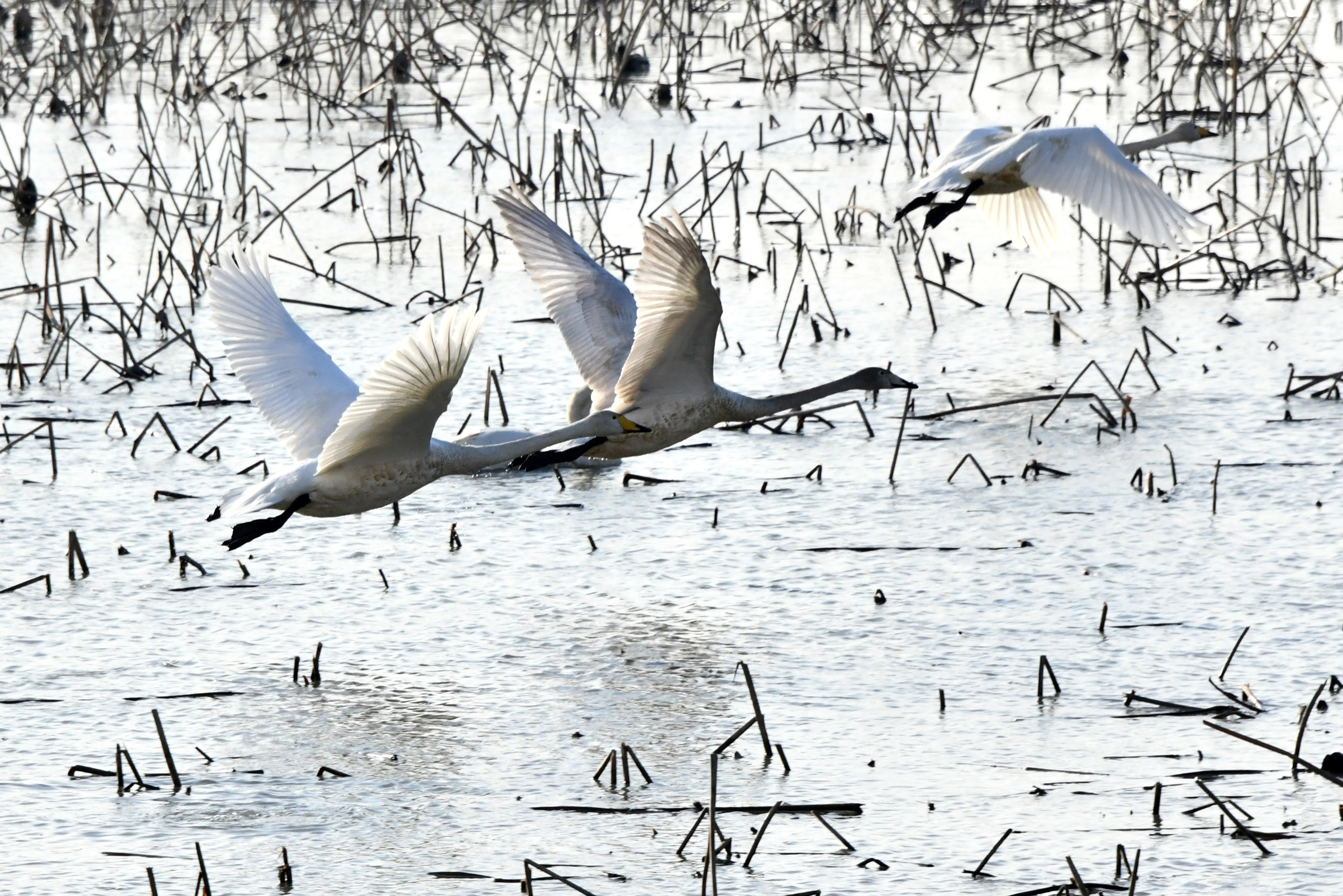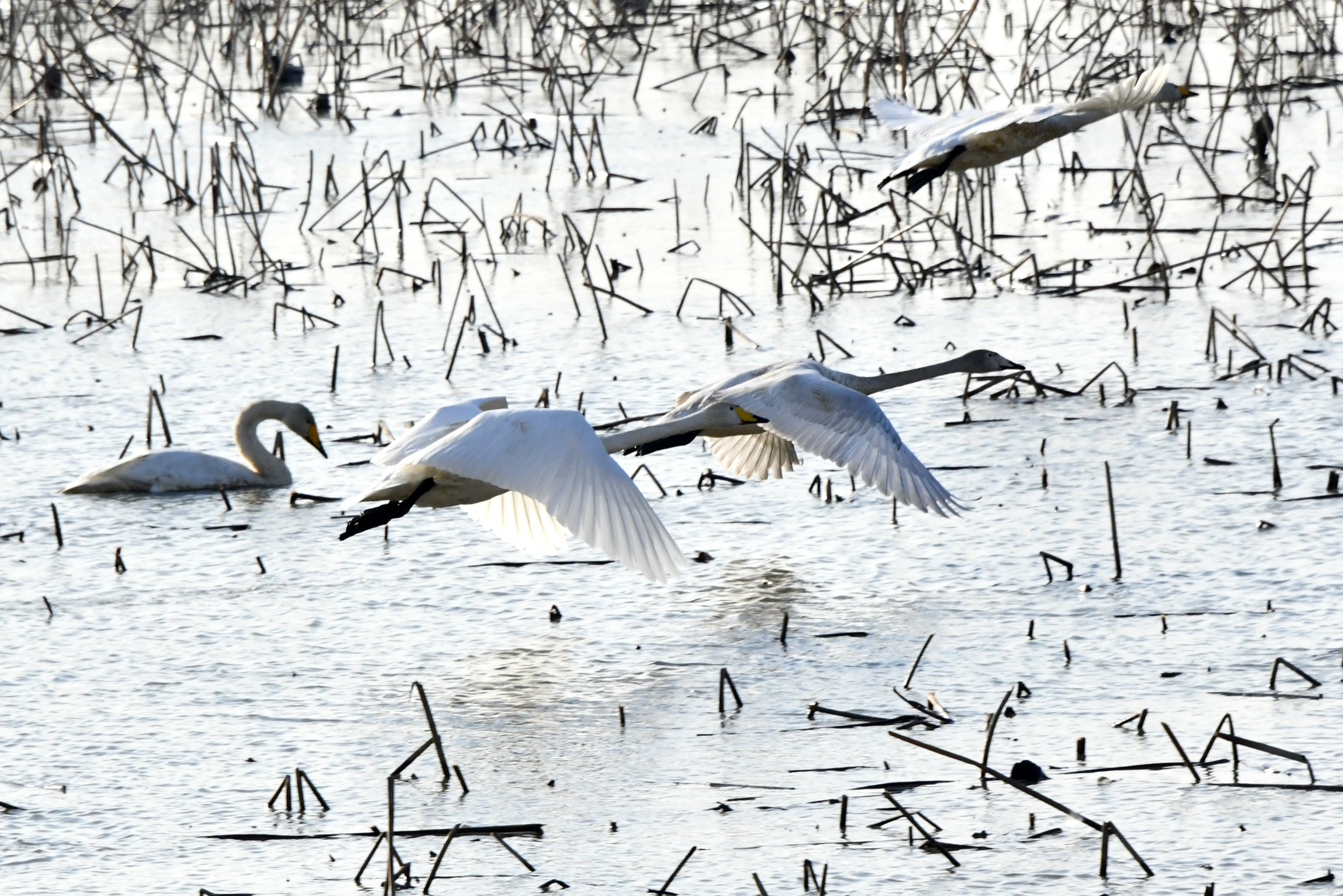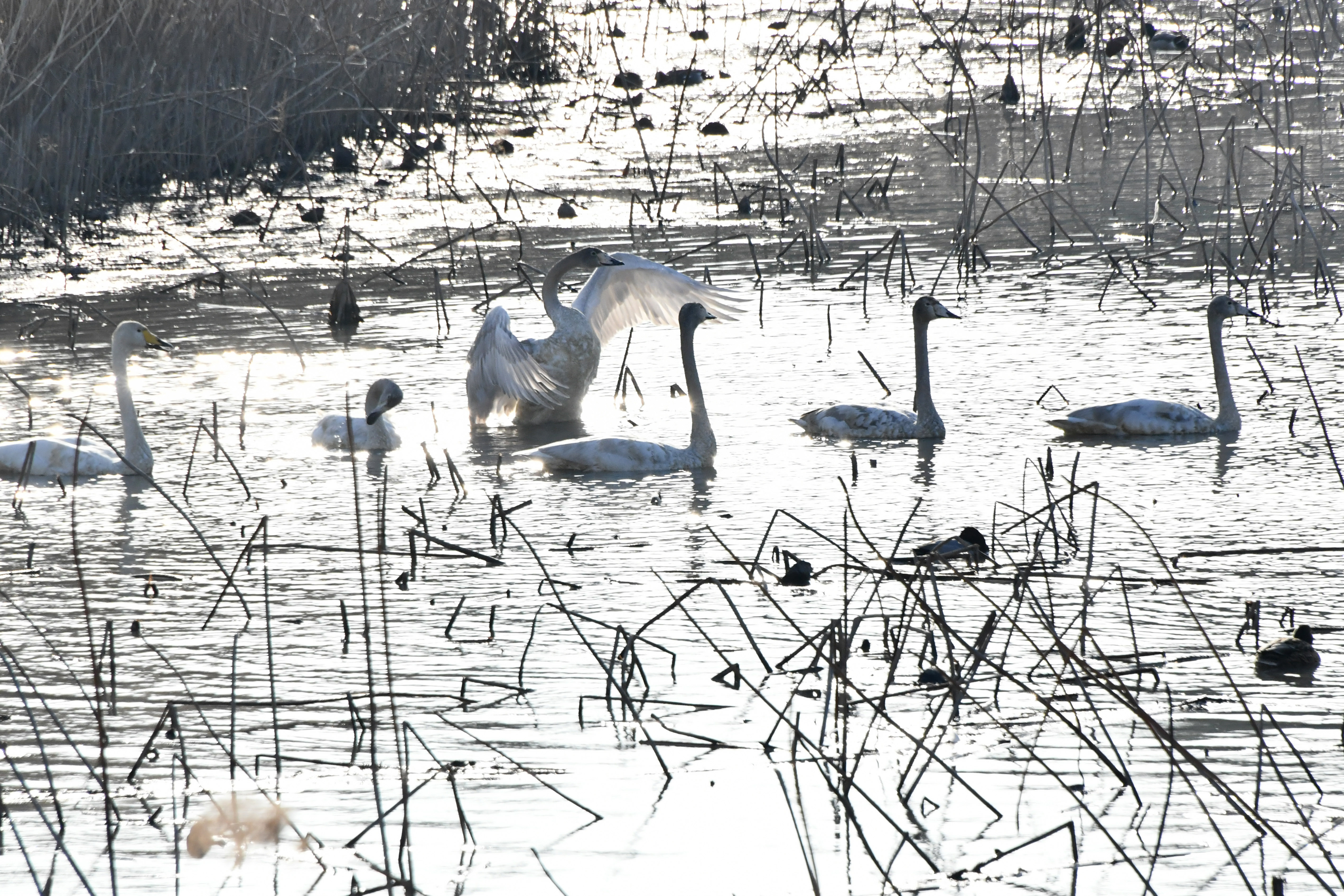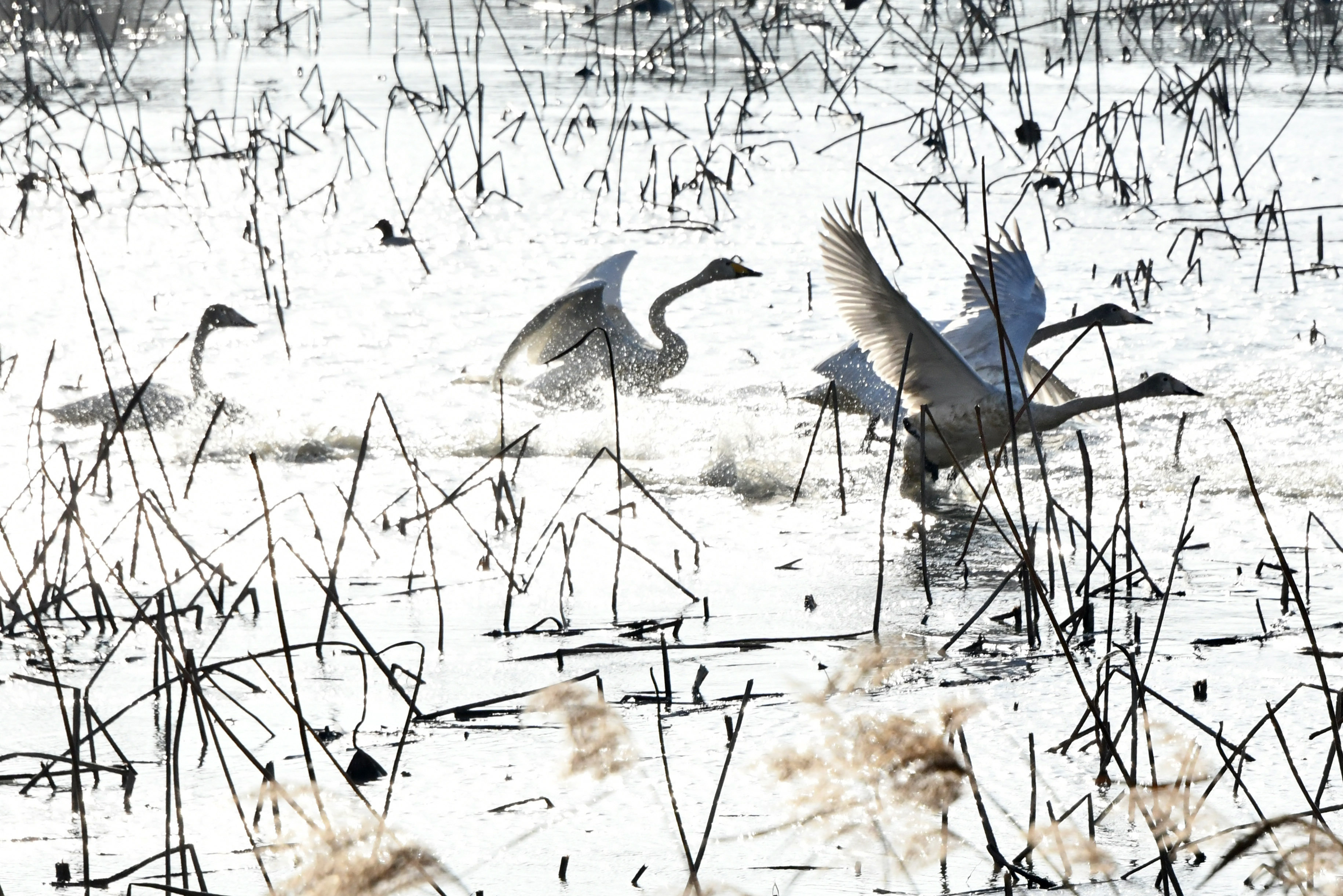 갈대가 무성한 안쪽 가장자리가 고니들의 활주로