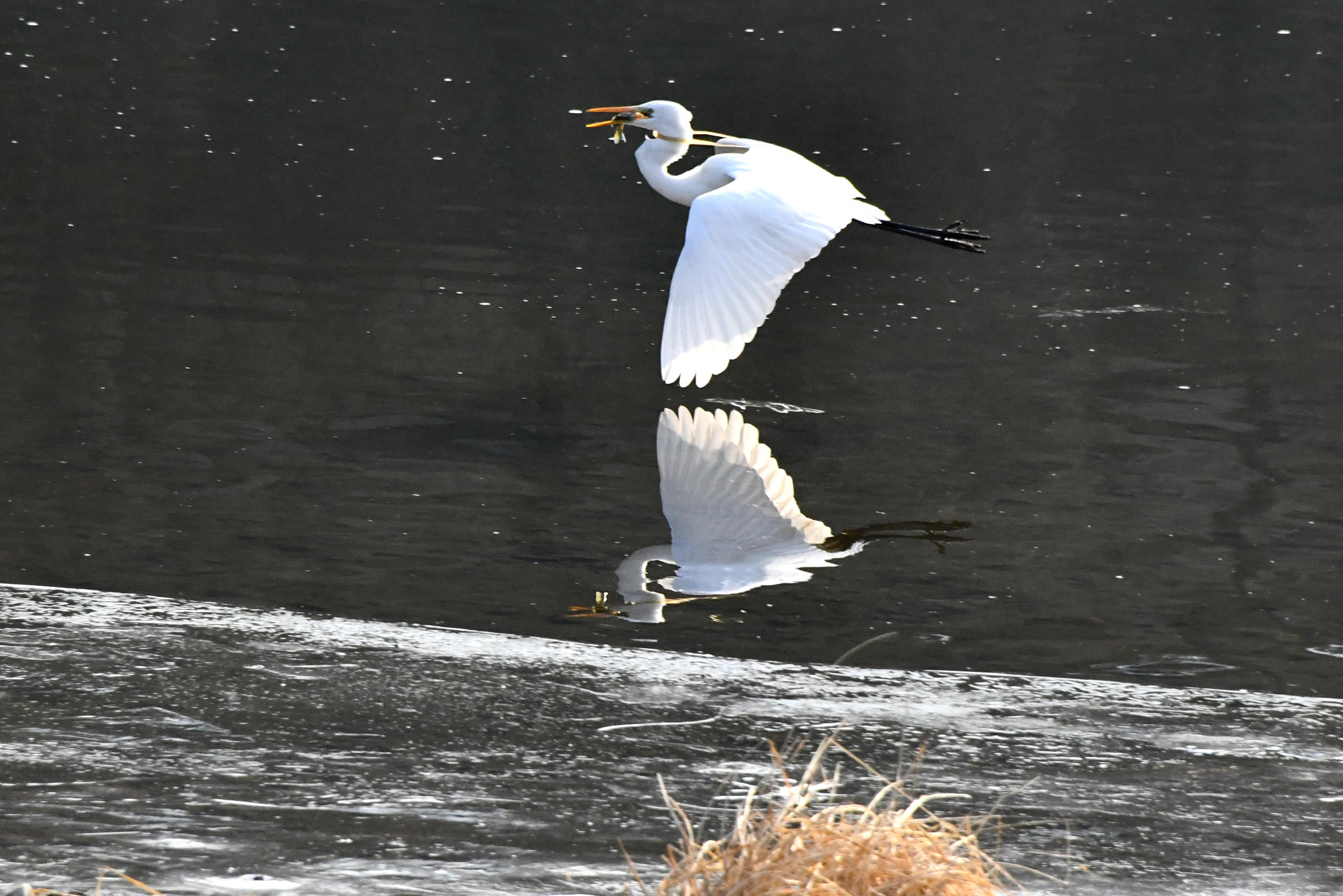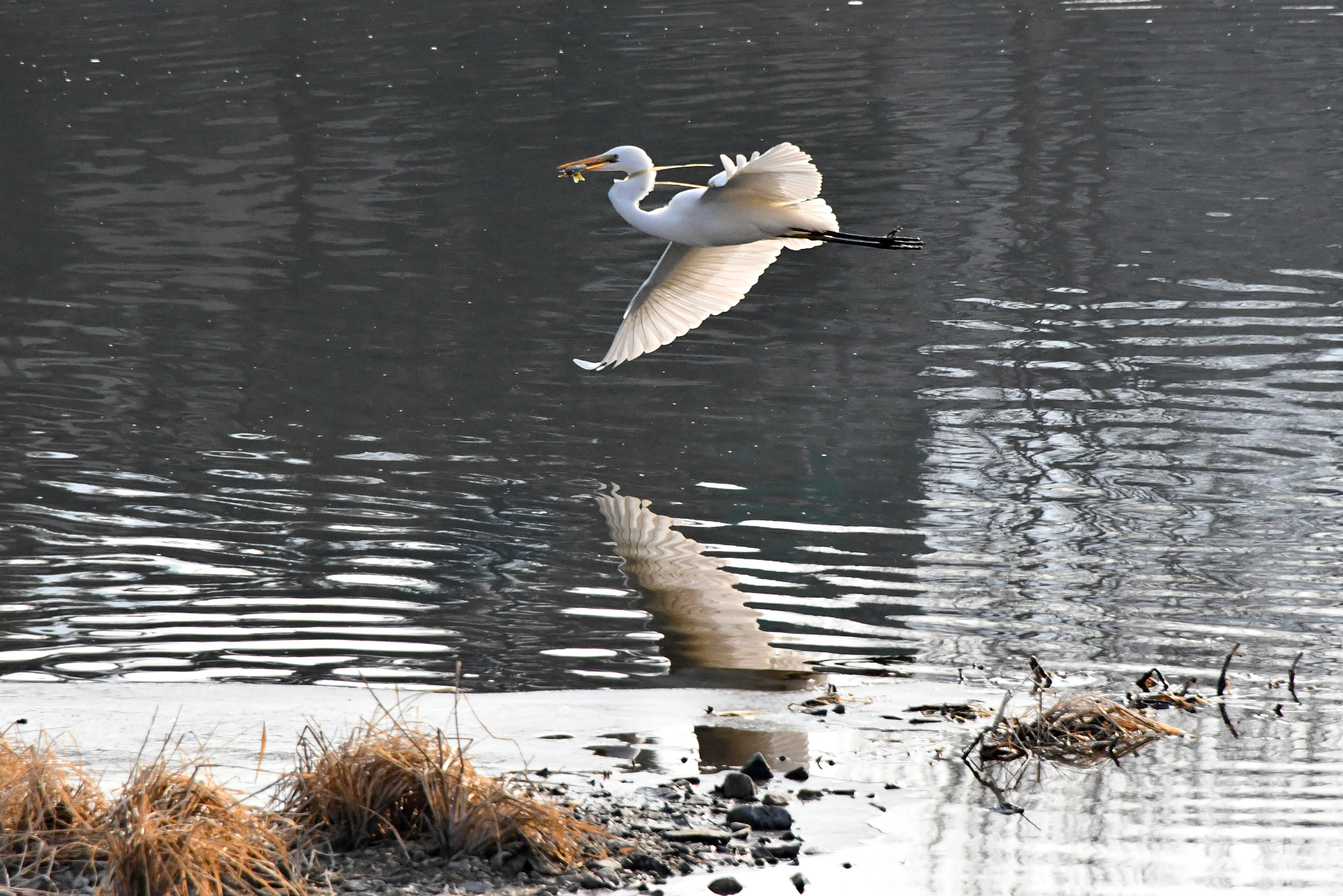 옆에 있던 왜가리가 백로를 뒤쫒아 오자