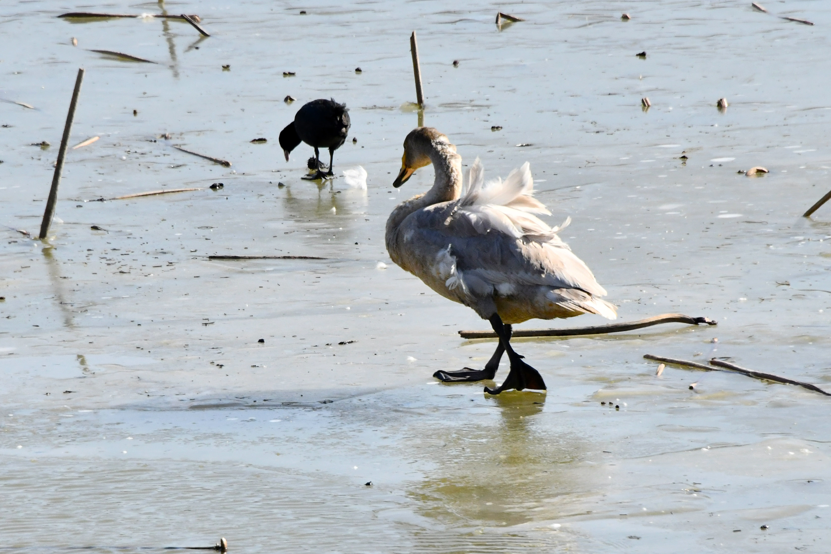 날았다 다시 내려앉는 고니들 몇마리만 있을뿐